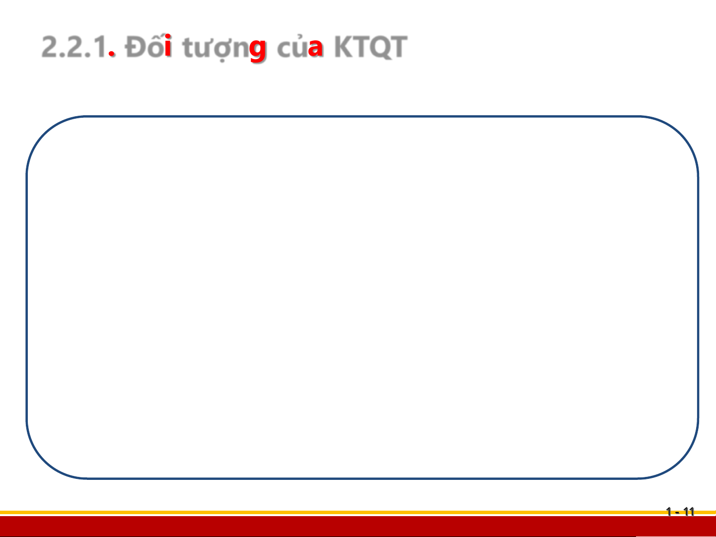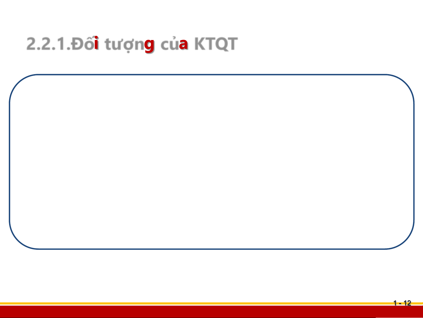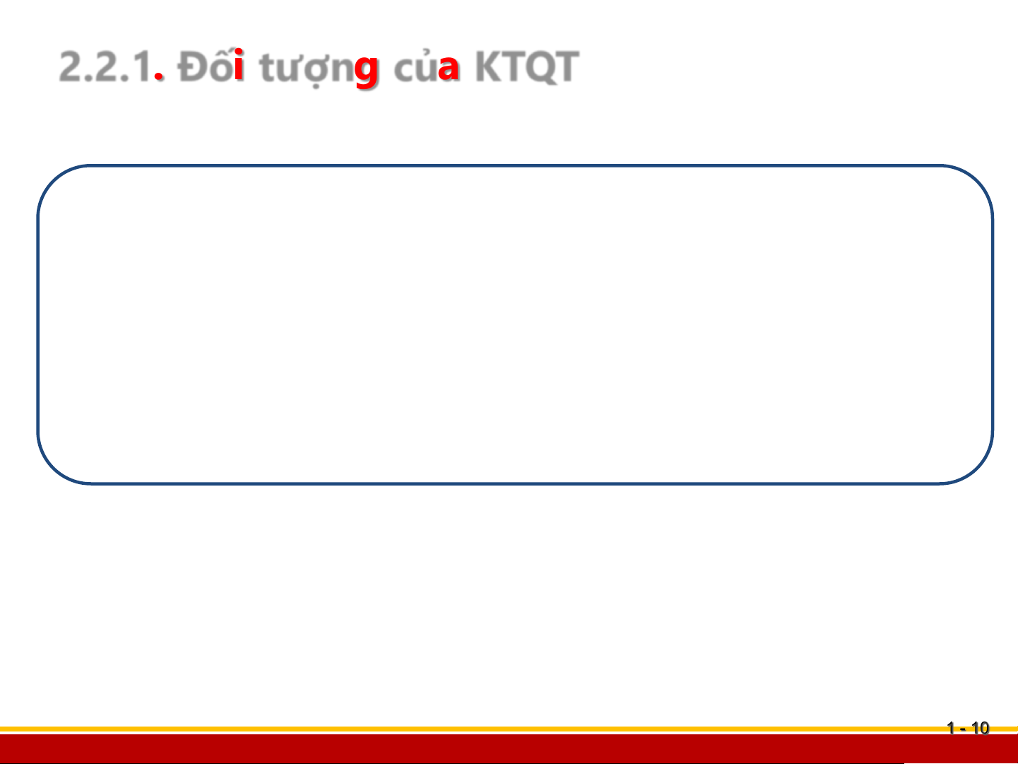 Điểm 1, Phần I - Quy định chung về KTQT 1 - 1 - 4 Bộ môn quản lý tài chính 2.1.1. Khái niệm