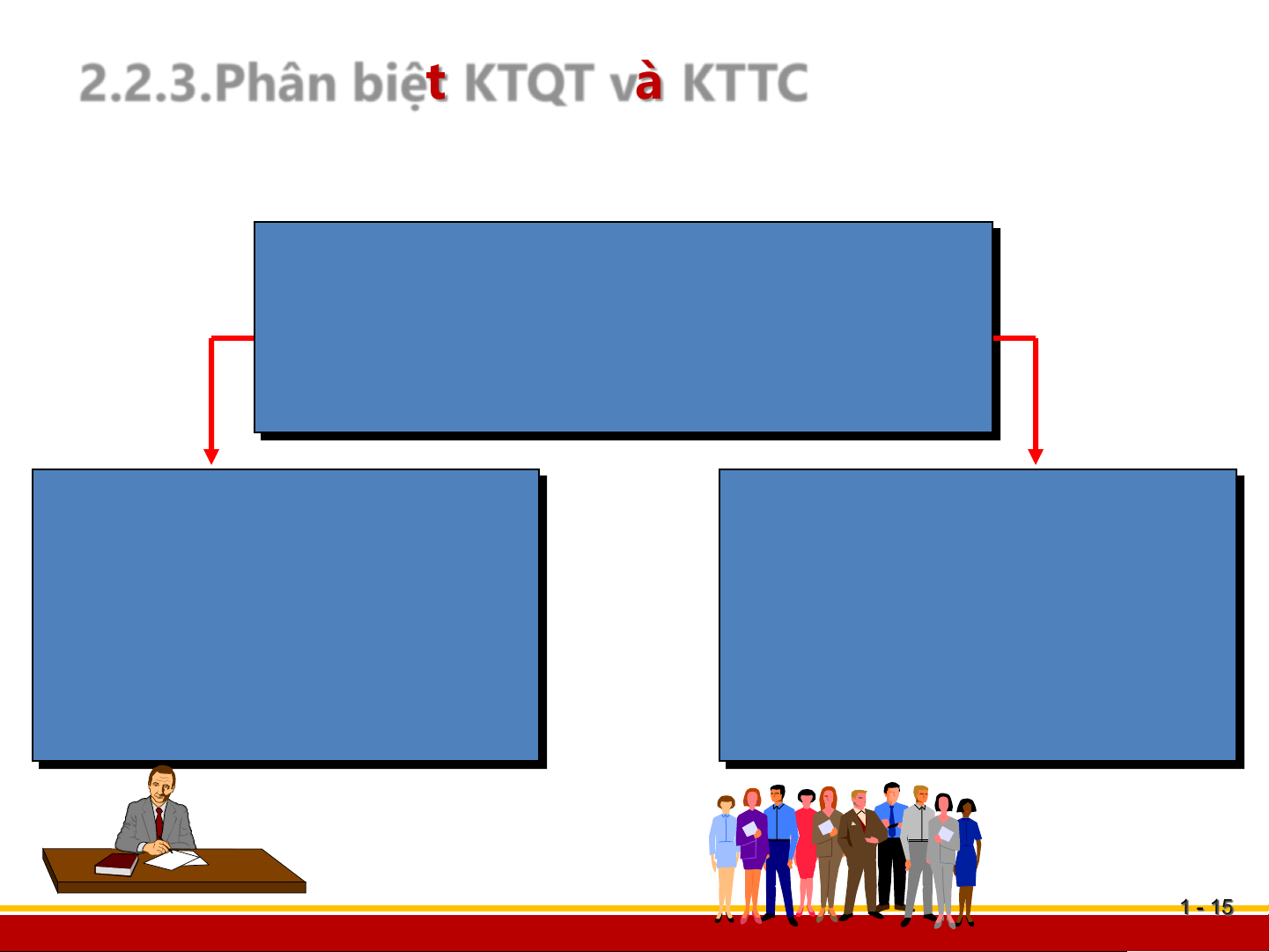 Hệ thống kế toán (Accounting System) Kế toán tài chính Kế toán quản trị (Financial Accounting) (Managerial Accounting) Sử dụng Sử dụng nội bộ bên ngoài 1 - 1 - 15 Bộ môn quản lý tài chính
