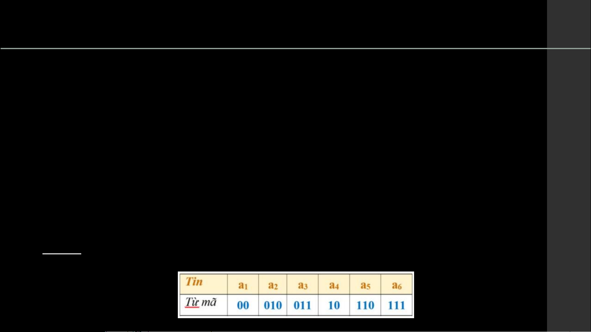 b) Dựa vào bảng mã này, giải mã chuỗi bit sau: 0101101110 7