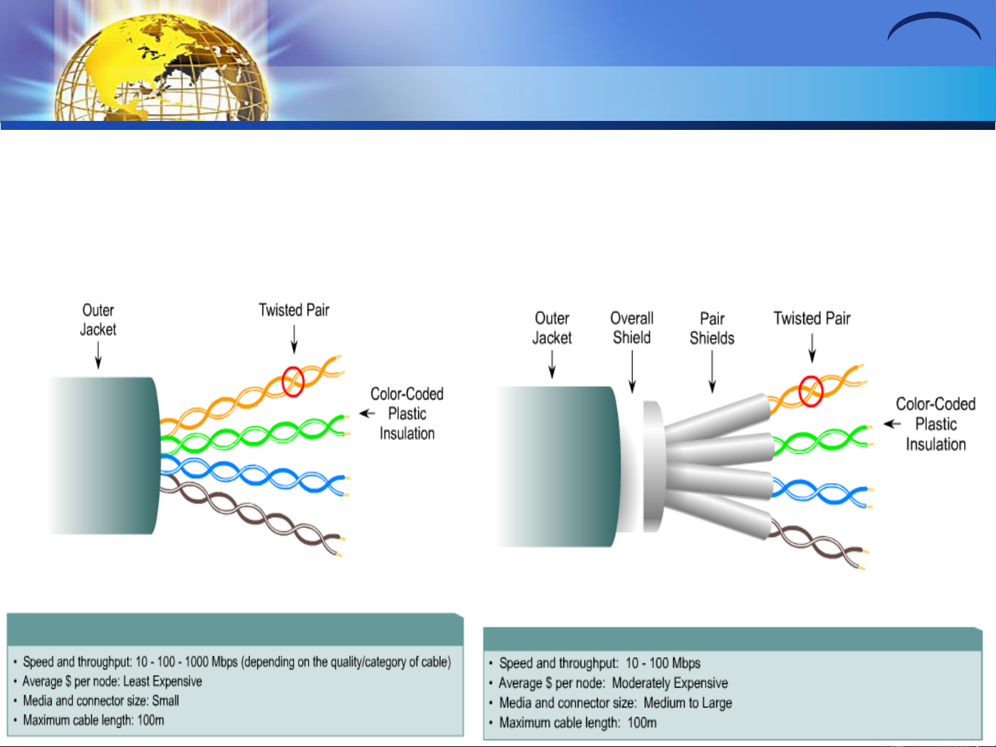 Unshielded Twisted Pair (UTP) Shielded Twisted Pair (STP)