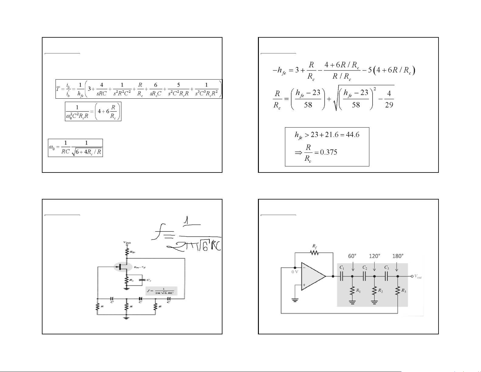 Dạng mạch với BJT: T loop gain: Tần số dao động: 41 42 Kỹ thuật tạo dao động Kỹ thuật tạo dao động Dạng mạch khác: Điều kiện dao động: 43 44 11 10/16/2023 Kỹ thuật tạo dao động