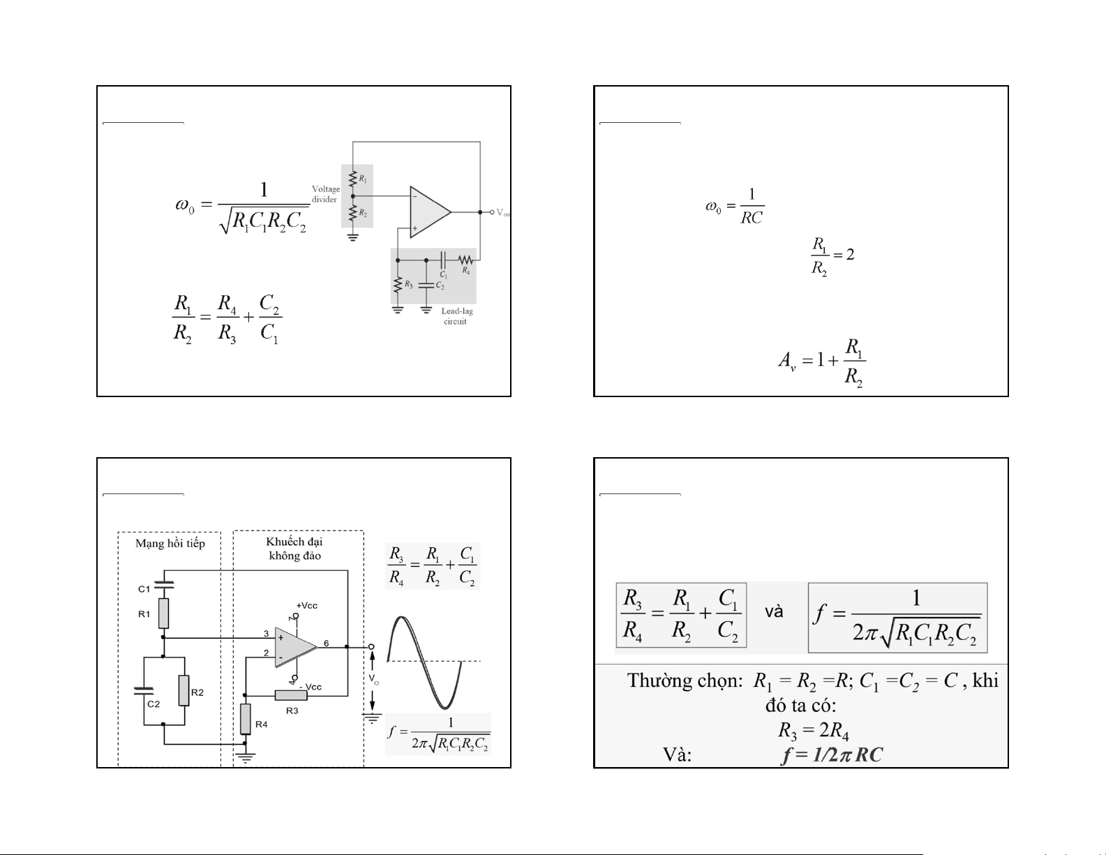 Cầu Wien được sử dụng rộng rãi trong loại mạch dao động hồi tiếp RC. 25 26 Kỹ thuật tạo dao động Kỹ thuật tạo dao động