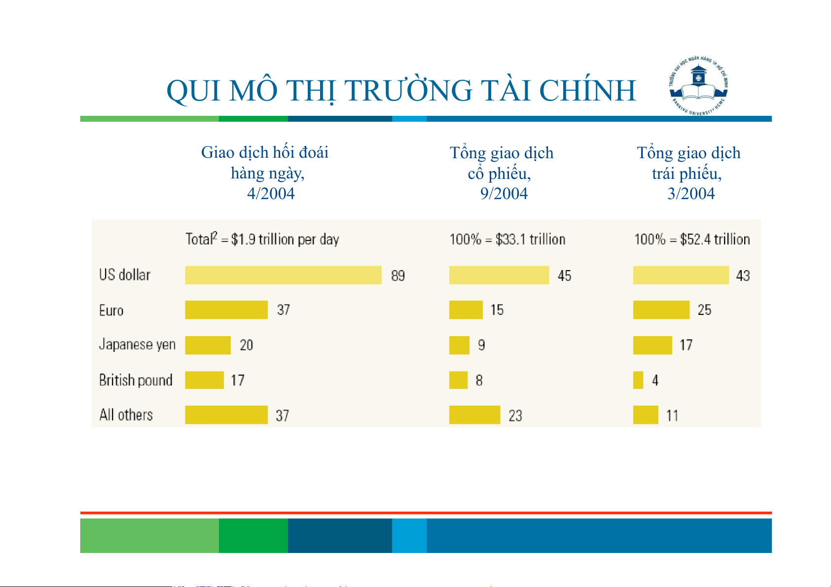 QUI MÔ THỊ TRƯỜNG TÀI CHÍNH Giao dịch hối đoái Tổng giao dịch Tổng giao dịch hàng ngày, cổ phiếu, trái phiếu, 4/2004 9/2004 3/2004