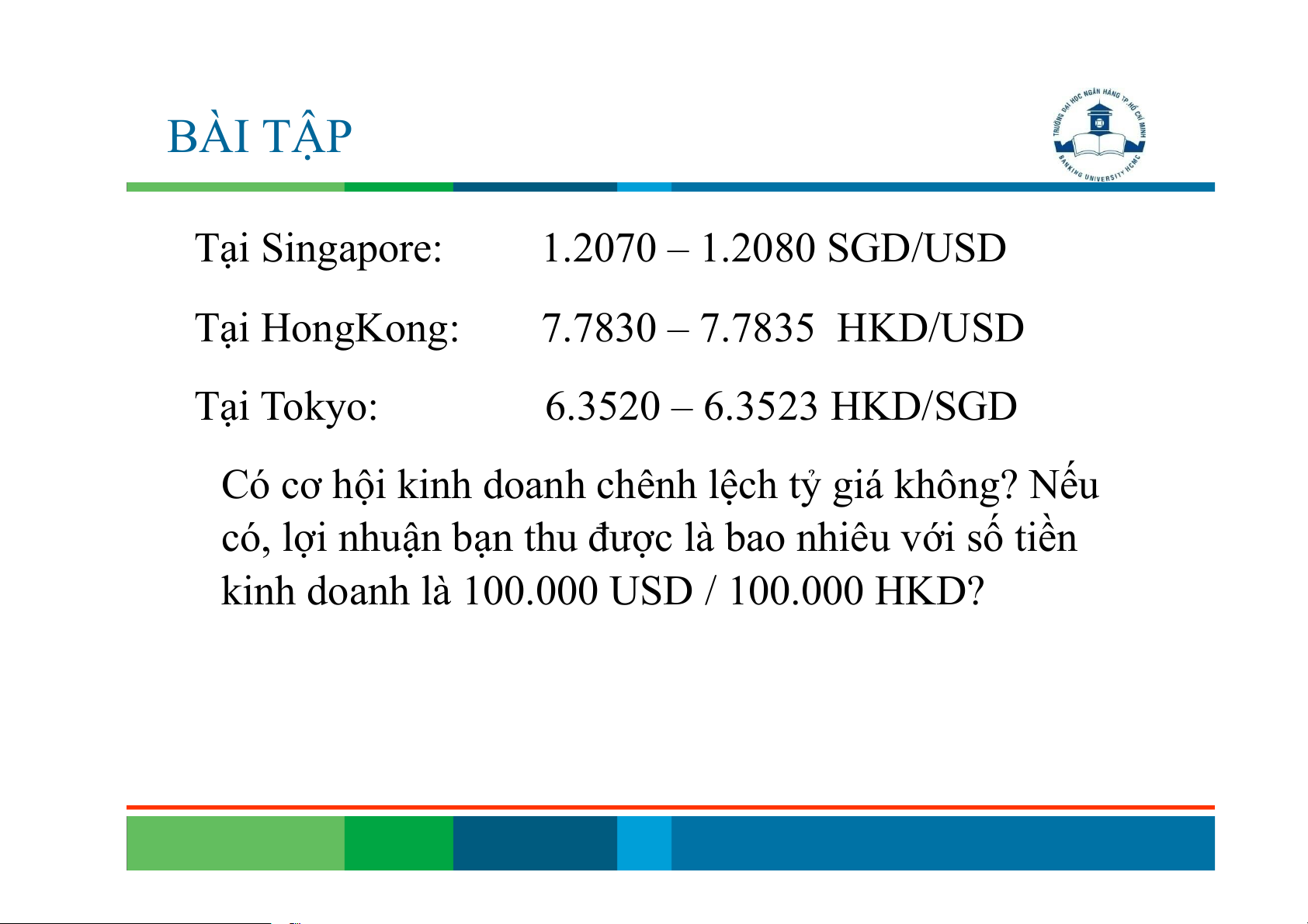Có 1 USD trong tay các anh chị sẽ làm gì để kiếm lời? BÀI TẬP Tại Singapore: 1.2070 – 1.2080 SGD/USD