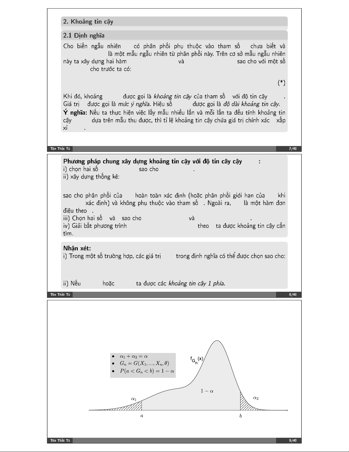 ❤R S♥❣ ❝P ✈✐➯♥ ❆ ①➜♣ ①➾✿ p ≈ 2640/4000 = 0, 66 ❚!♥ ❚❤➜% ❚& ✻✴✹✵ X θ {X1, X2, ..., Xn} L = L(X1, ..., Xn) U = U (X1, ..., Xn) α ∈ (0, 1)