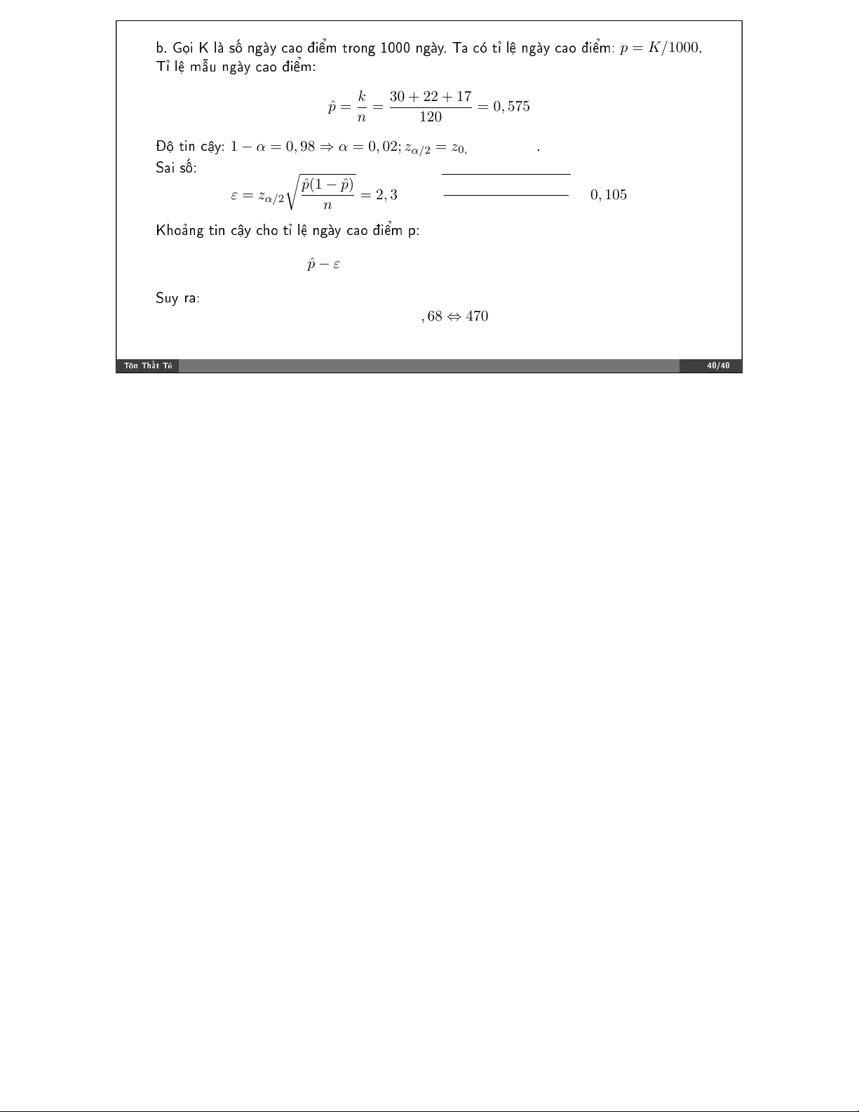 ✲ ❑❤♦↔♥❣ (✐♥ ❝➟② (-✐ (❤✐➸✉ ❝❤♦ p✿ r ˆp(1 − ˆp) p > ˆ p − zα . n ❚!♥ ❚❤➜% ❚& ✷✾✴✹✵ ❱➼ ❞# ✼