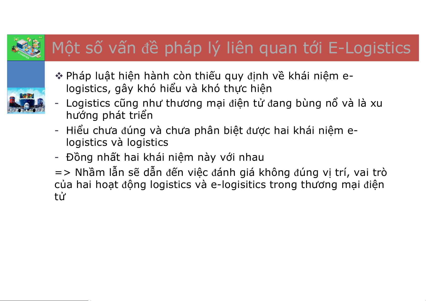 - Hiểu chưa đúng và chưa phân biệt được hai khái niệm e- logistics và logistics