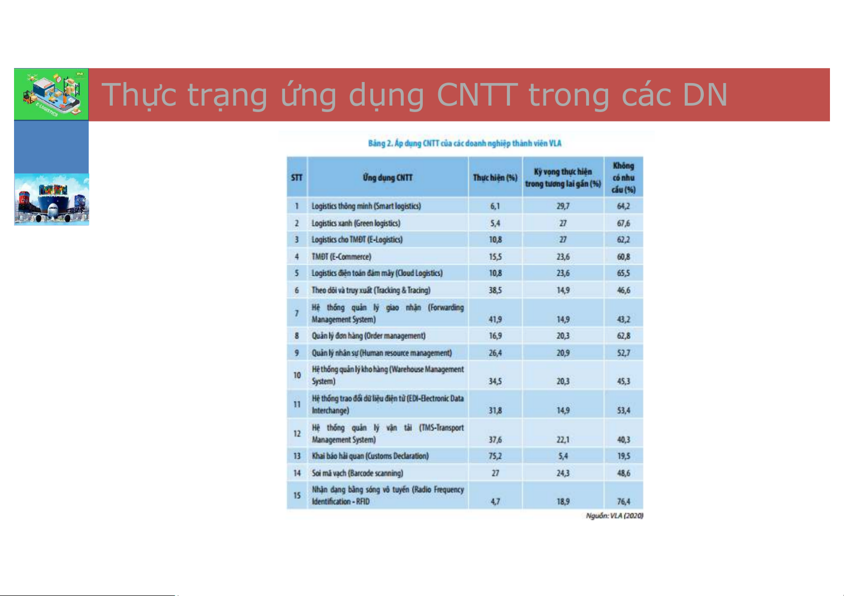 - Trình độ ứng dụng CNTT của các doanh nghiệp logistics Việt