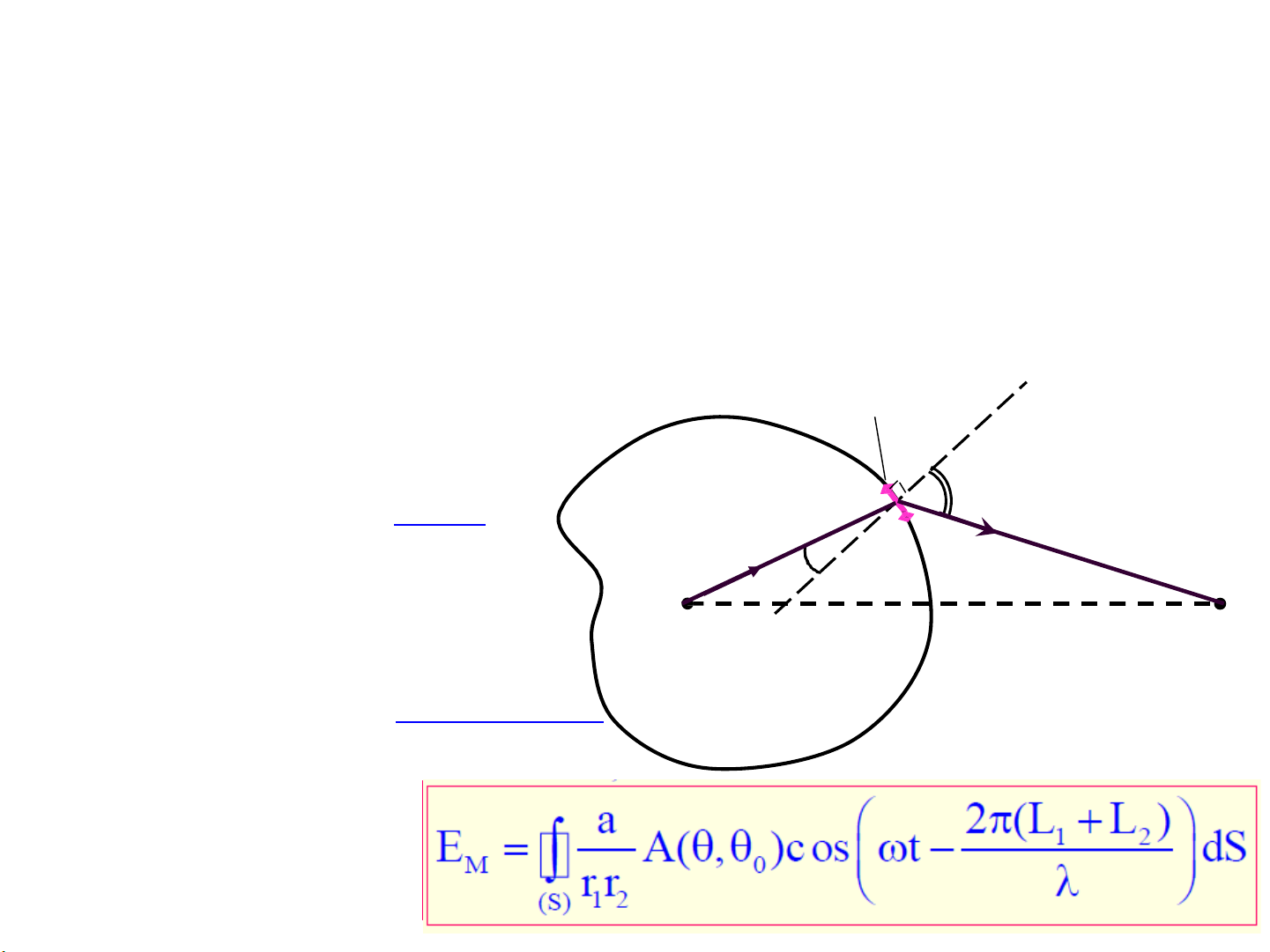 * Dđ sáng tại M do mặt (S) a 2(L + L ) truyền đến: 1 2 E = A(, )cos t − dS M 0 r r (S) 1 2