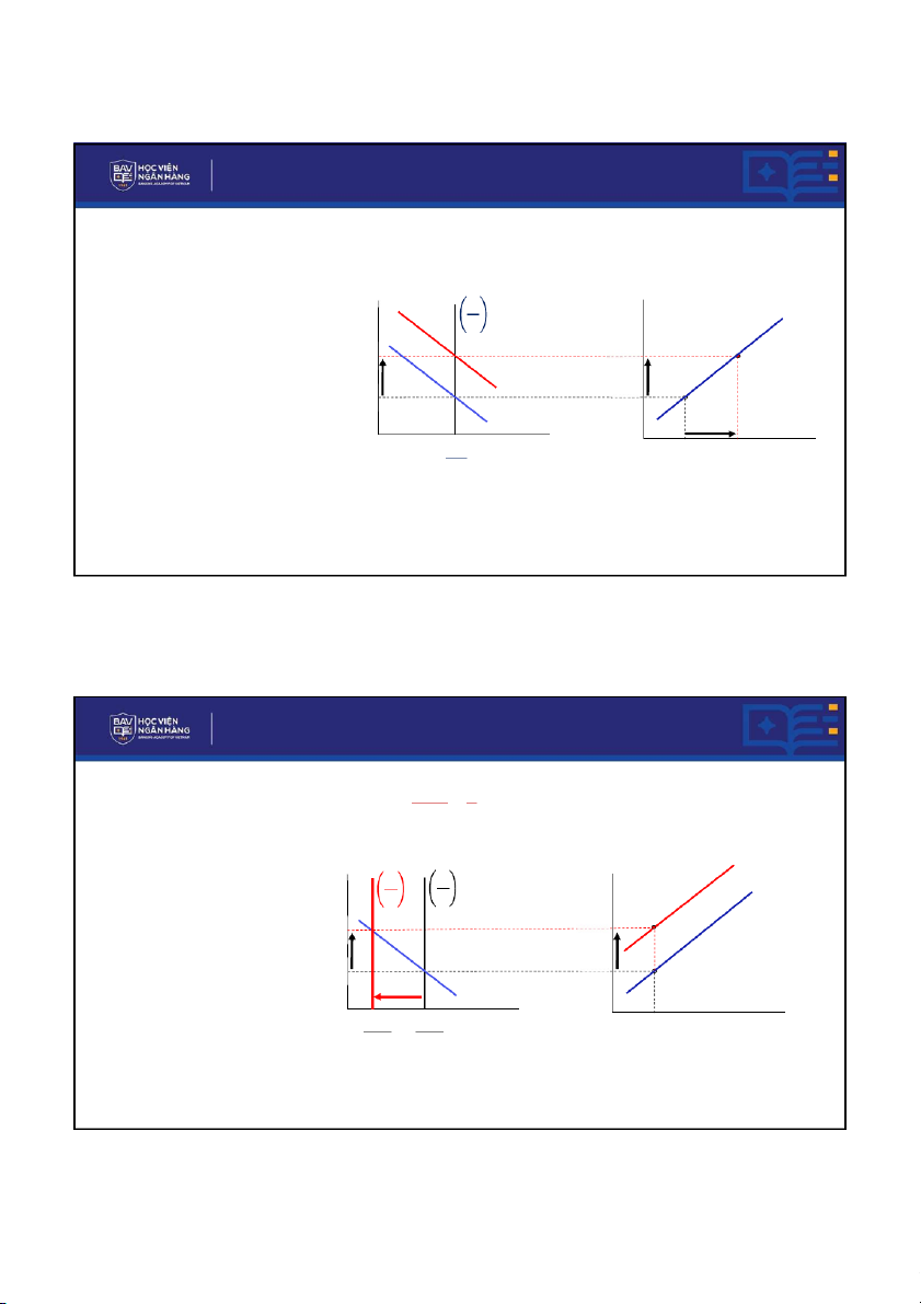Cân bằng trên thị trường tiền tệ: 𝒔 𝒅 r 𝑴 = 𝑴 𝑀 Lãi 𝑷 𝑷 suấ 𝑃 t Lãi suất điều 𝑴𝑺 Hay chỉnh để thị 𝑷=𝑳 𝒓, 𝒀 trường tiền tệ cân bằng r1 =𝒌. 𝒀 − 𝒉. 𝒓 r2 L (r, Y )