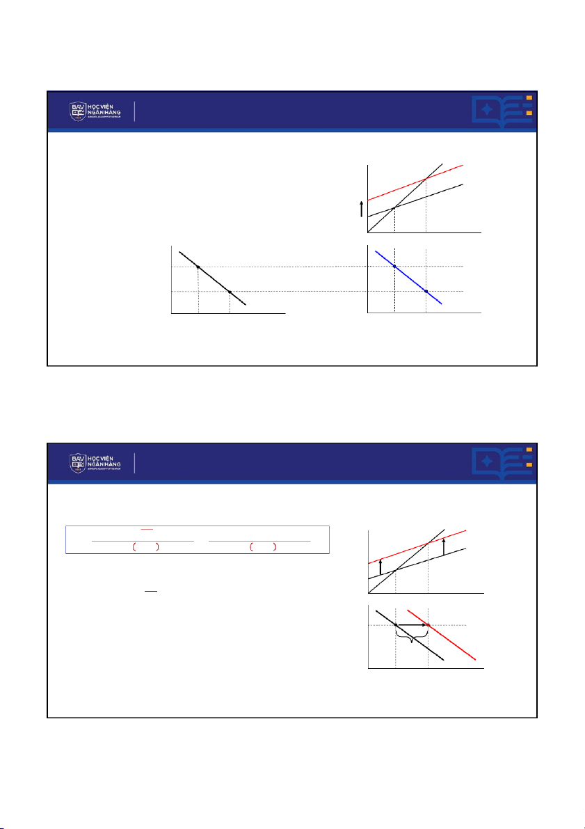 •Sự dịch chuyển của đường LM: 𝒉. 𝒀 Khi MS thay đổi: r r LM2 Tại mức Y và P cho 𝑀 𝑀 LM1 trước, khi MS giảm 𝑃 𝑃 B đường cung tiền r2 r2 dịch trái A r1 r1 r tăng với mọi Y L (r, Y 1) Đường LM dịch 𝑴𝑺𝟐 𝑴𝑺𝟏 M Y Y1 lên trên 1 đoạn: 𝑷 𝑷 ∆r = r2 – r1