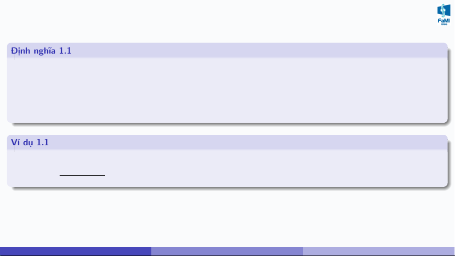 được gọi là hội tụ về M0 ∈ R khi và chỉ khi lim d(M0, Mn) = 0. n→∞ Khoa Toán-Tin (HUST) MI1111–Chương III 2024 3 / 48 Định nghĩa 1.1 Cho D ⊂ n