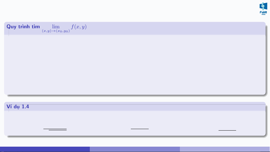 Giới hạn của hàm số nhiều biến số Quy trình tìm lim f (x, y) (x,y)→(x0,y0)