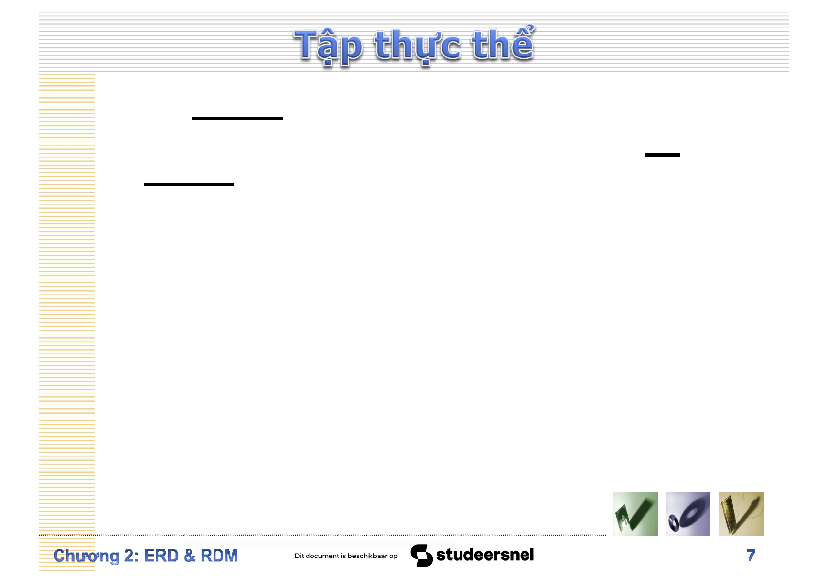 • Tập hợp các thực thể giống nhau tạo thành 1 tập thực thể • Chú ý – Thực thể (Entity) – Đối tượng (Object)