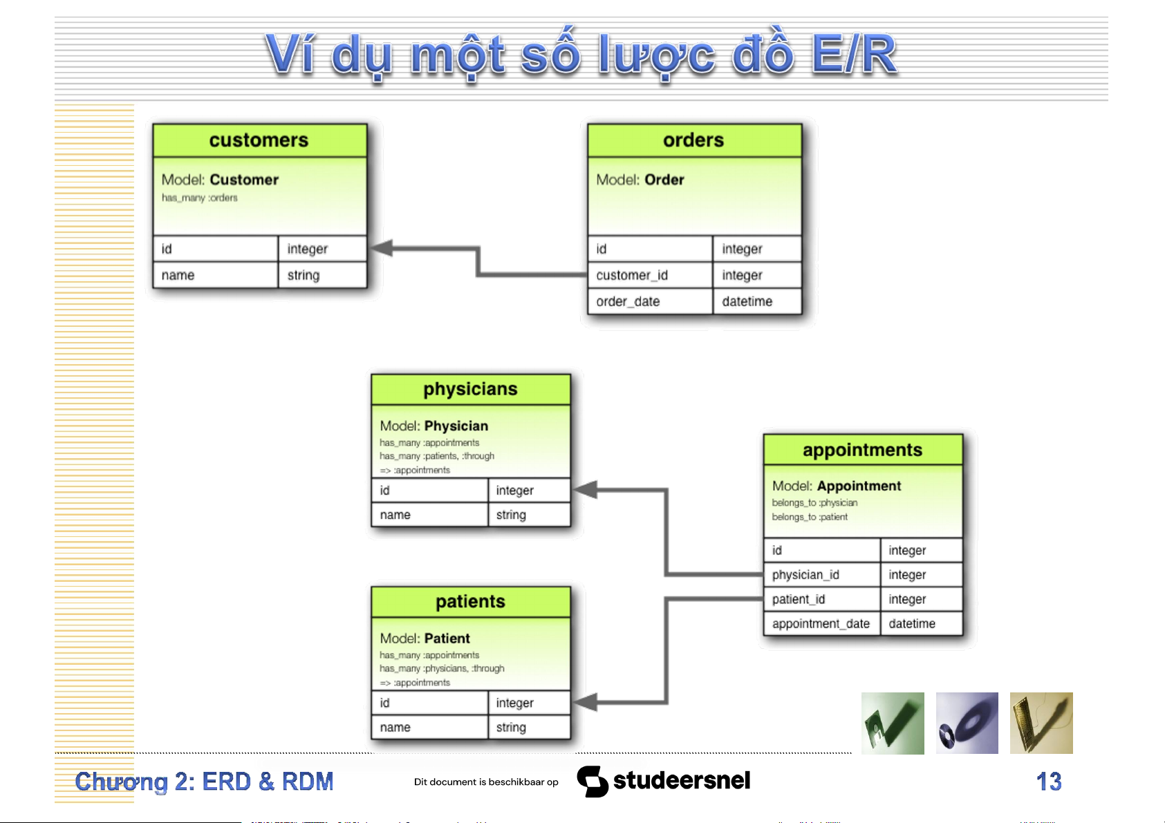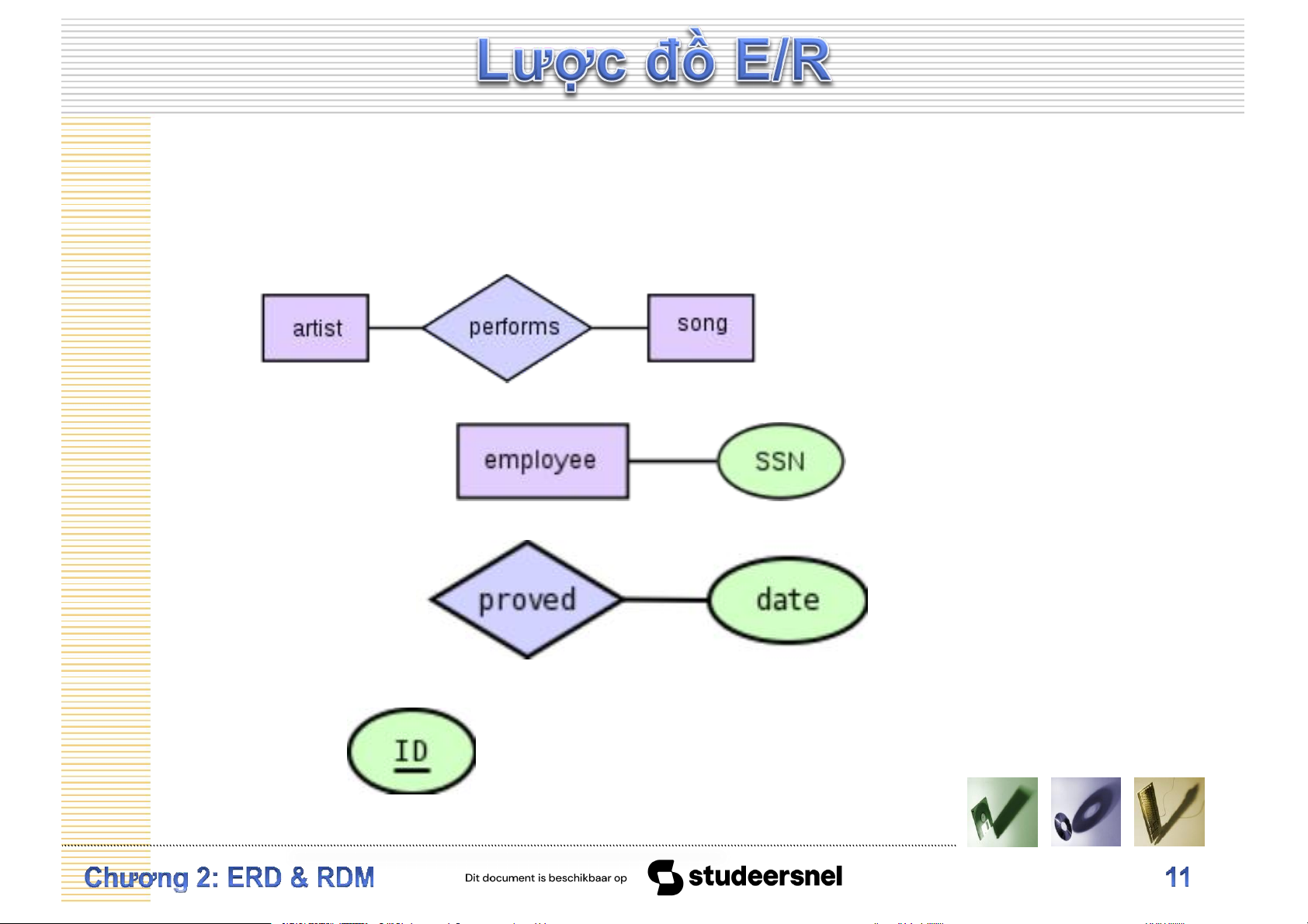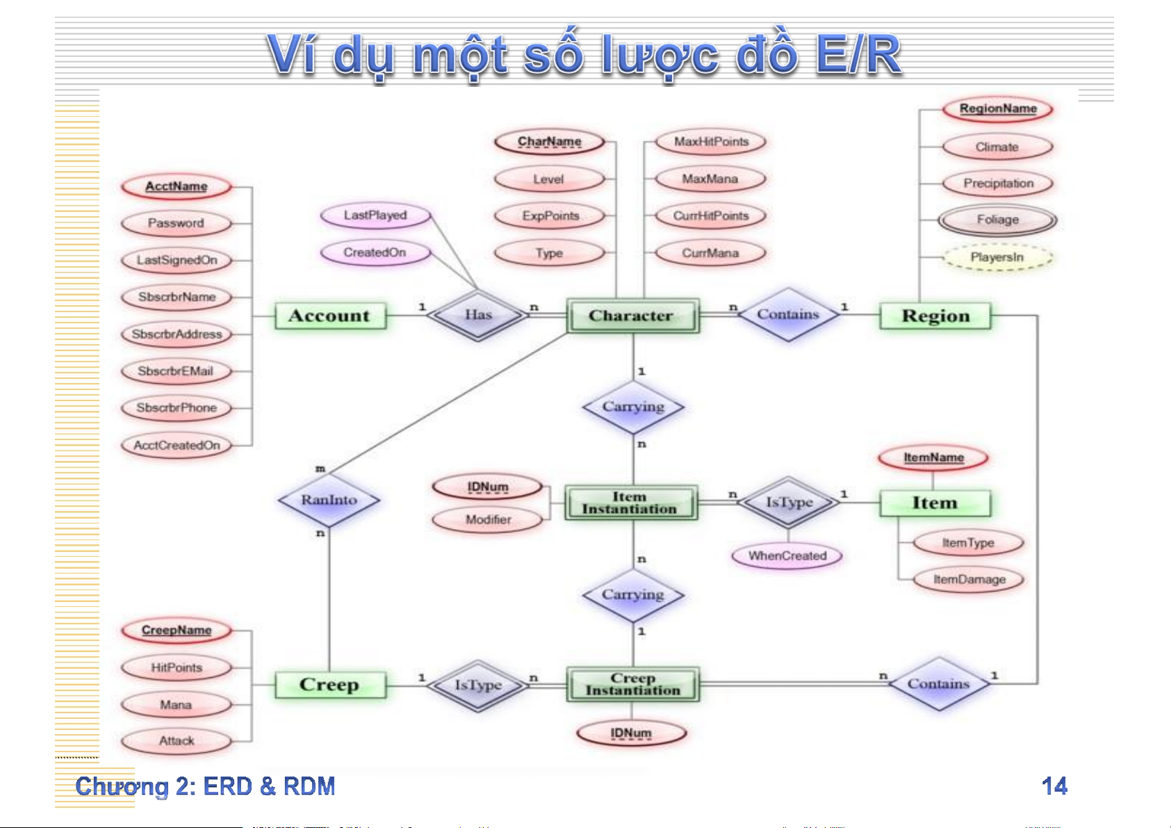 • Một CSDL được mô tả bởi lược đồ E/R sẽ chứa đựng