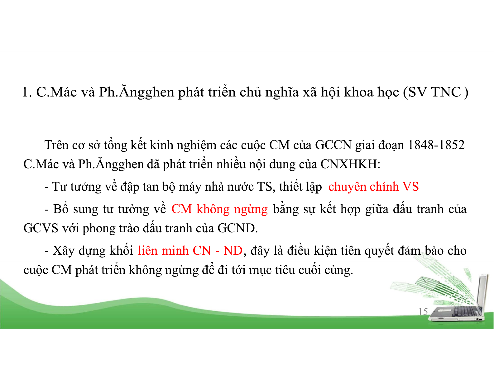 1. C.Mác và Ph.Ăngghen phát triển Chủ nghĩa xã hội khoa học (SV TNC)
