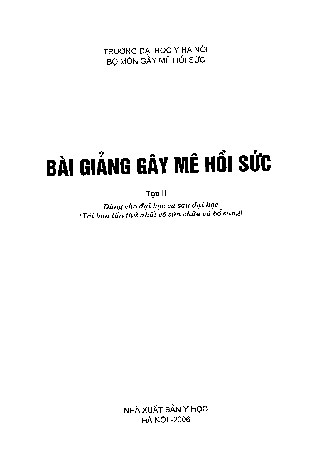 Bài giảng Gây mê hồi sức Tập 2 | Trường Đại học Y Hà Nội
