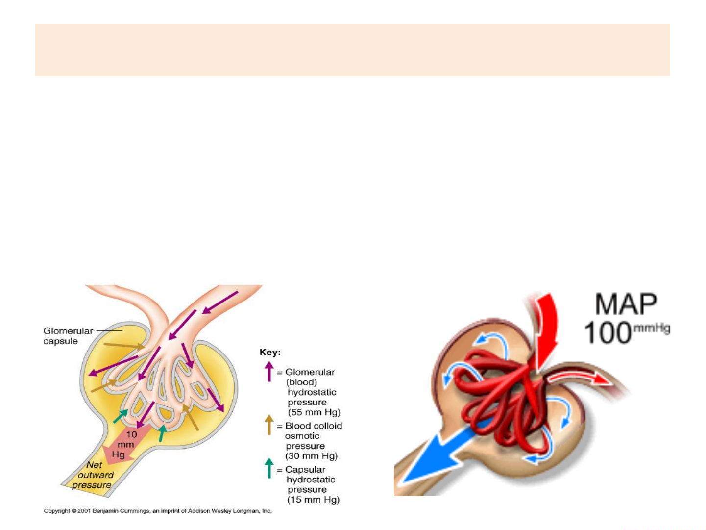 • Các áp suất trong cầu thận quyết định lên hướng lọc:
