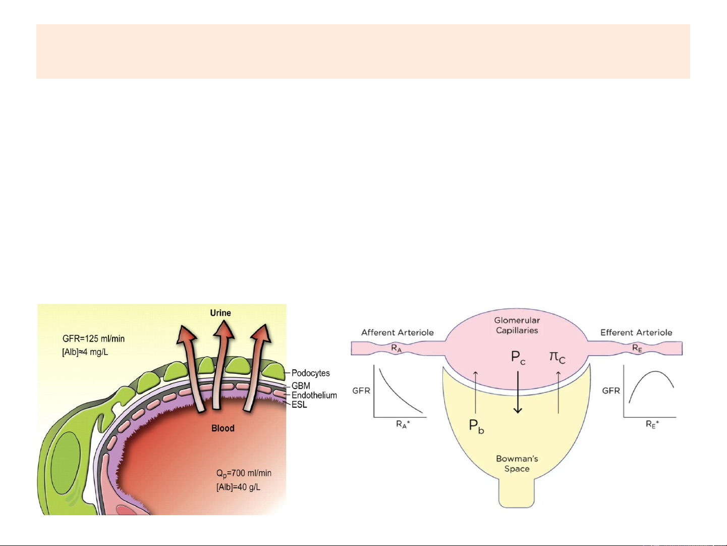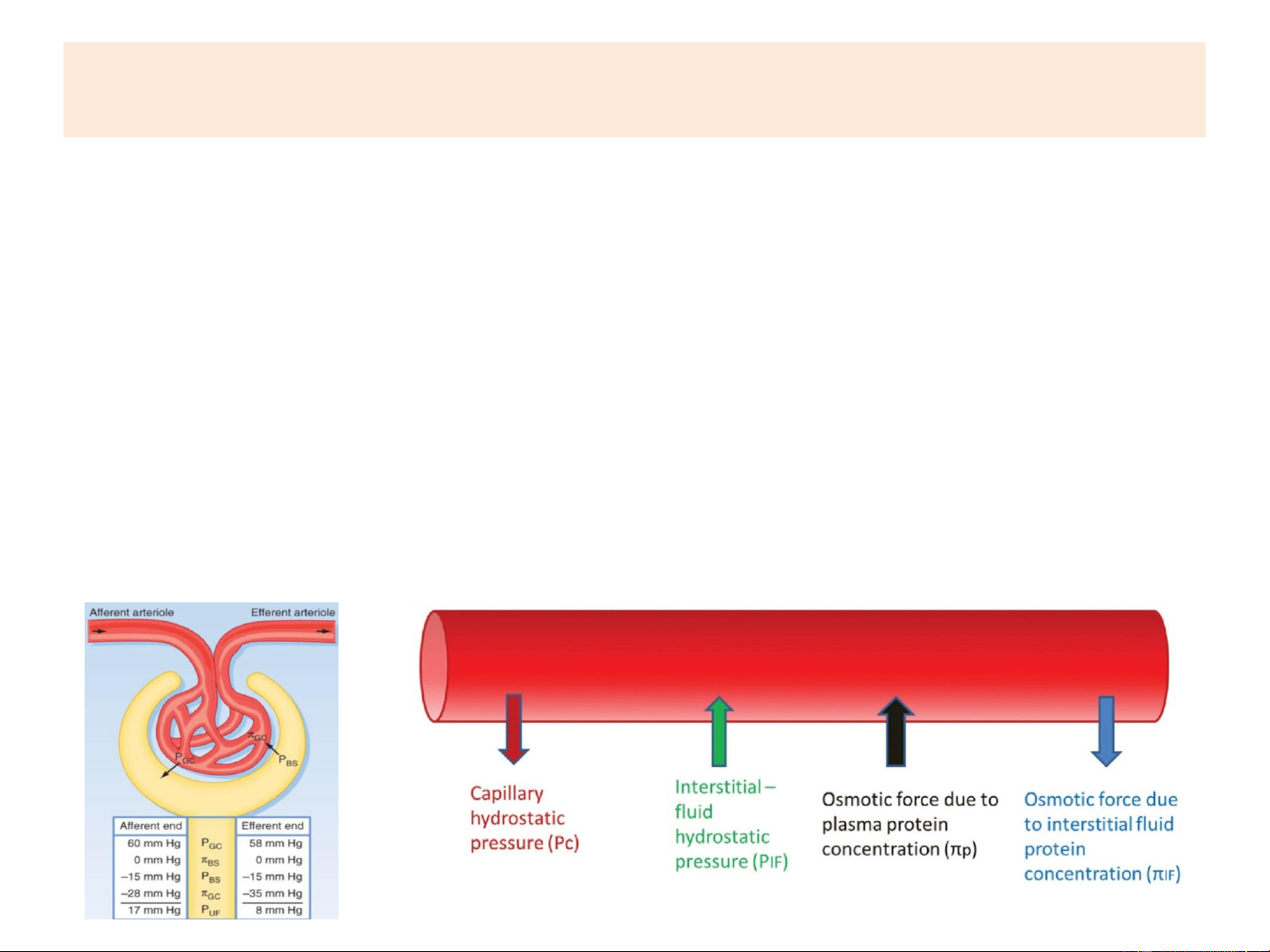 • Phụ thuộc các áp suất 2 bên màng lọc cầu thận (định luật Starling):