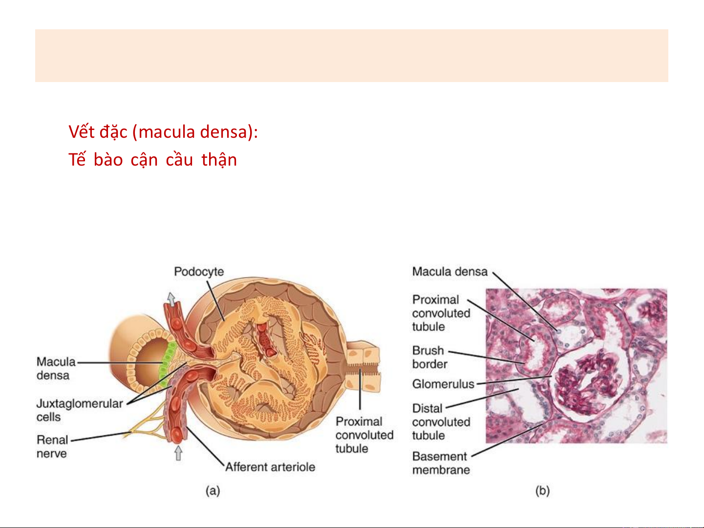 • Vết đặc (macula densa): do biểu mô ở phần đầu ống lượn xa tạo thành