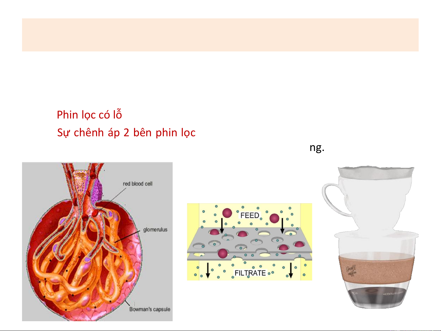 Bowman -> tạo ra áp suất đẩy dịch qua các lỗ lọc trên màng.