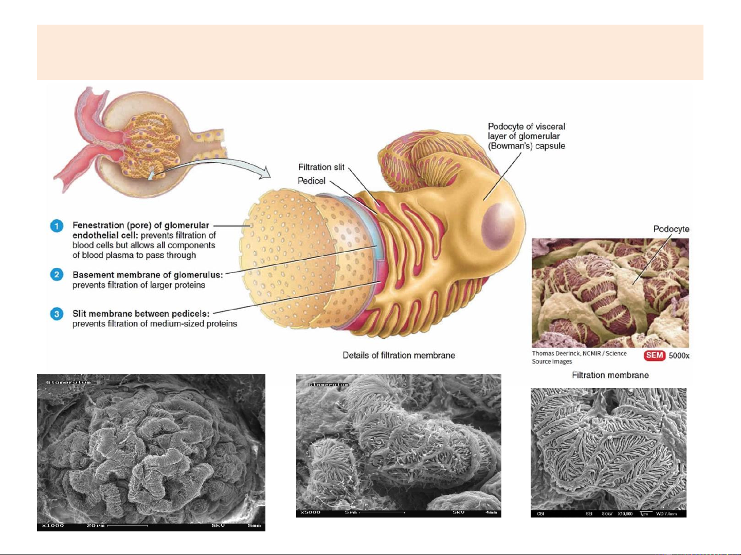 – Lớp biểu mô có chân (podocyte): tạo nên các khe lọc nhỏ nhất (40