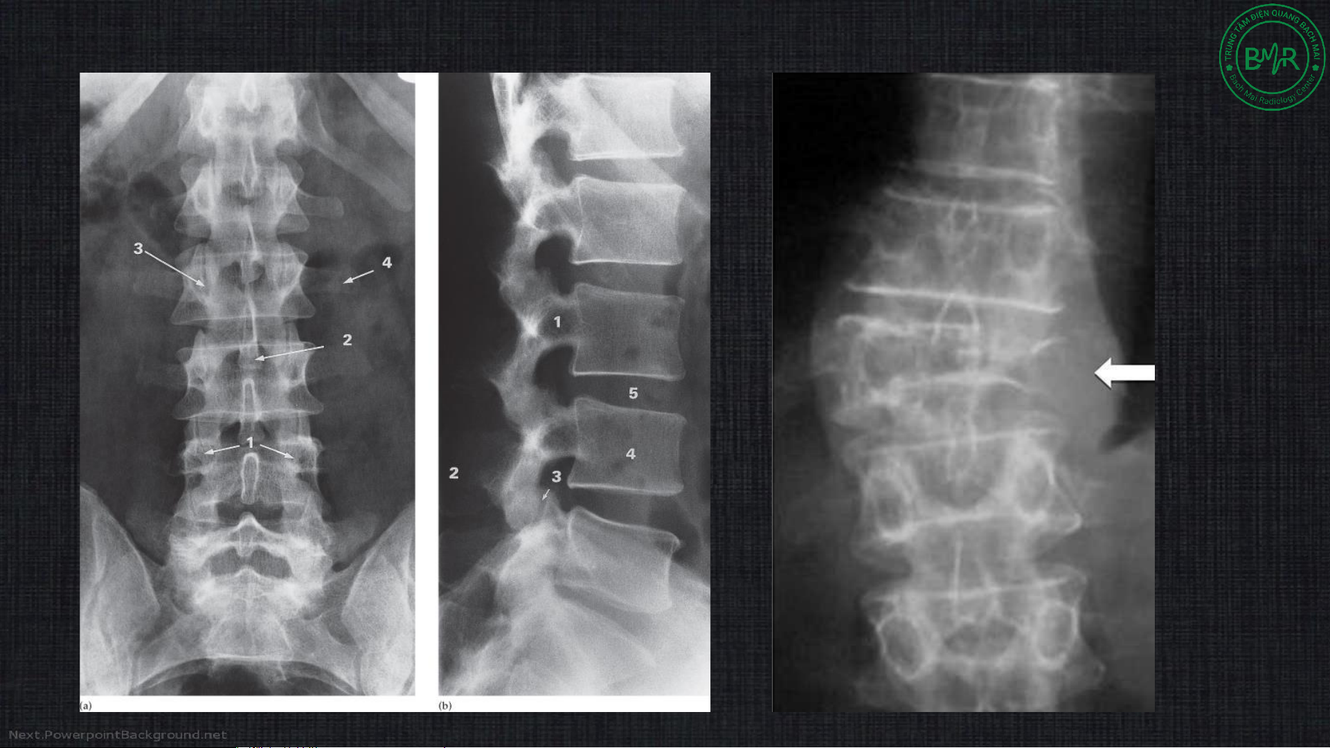 • Chụp tủy sống (myelography) • Cắt lớp vi tính • Cộng hưởng từ 2a. Xquang 2a. Xquang Ứng dụng • Xquang thường quy: