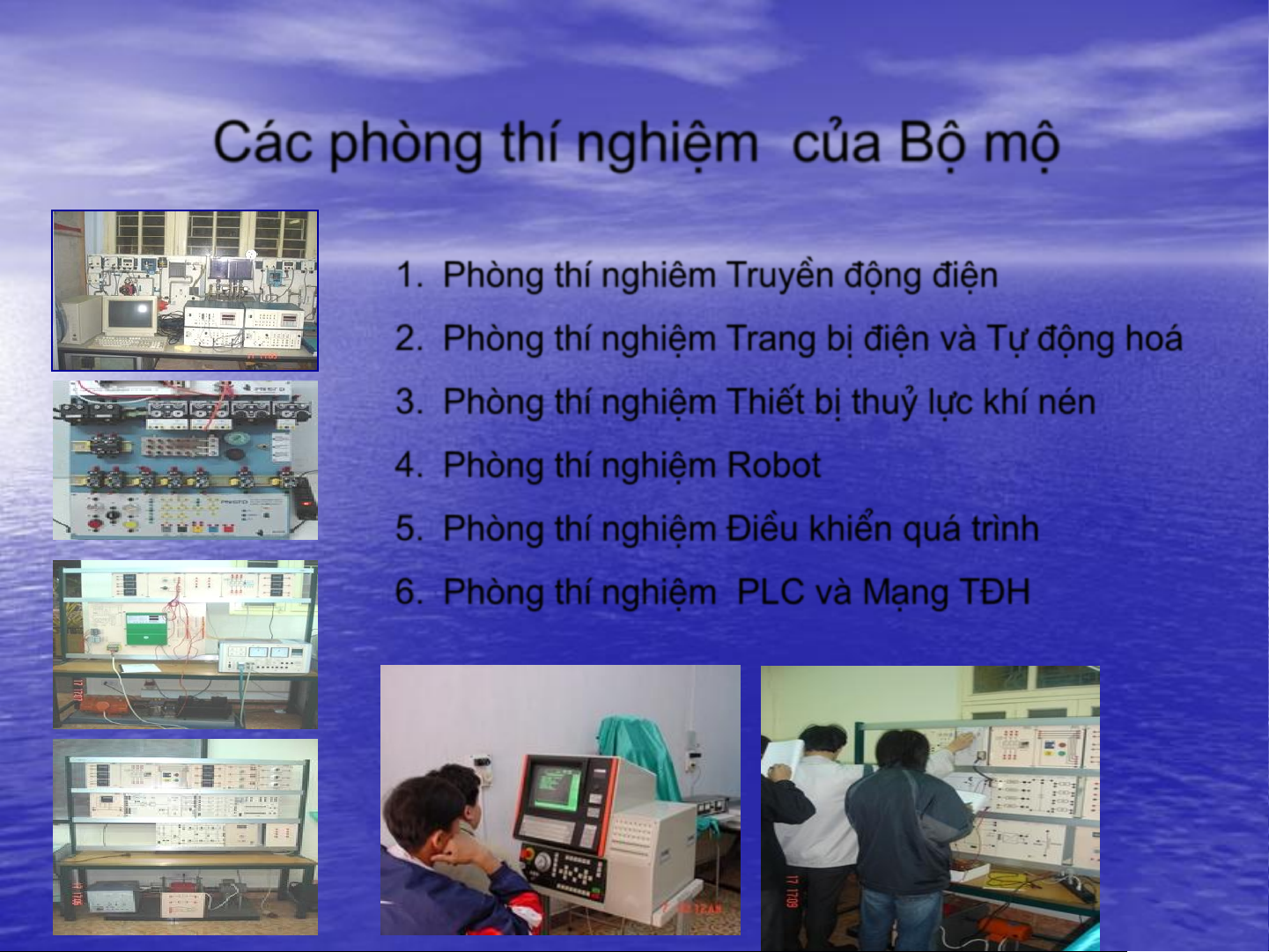 3. Phßng thÝ nghiÖm ThiÕt bÞ thuû lùc khÝ nÐn 4. Phßng thÝ nghiÖm Robot