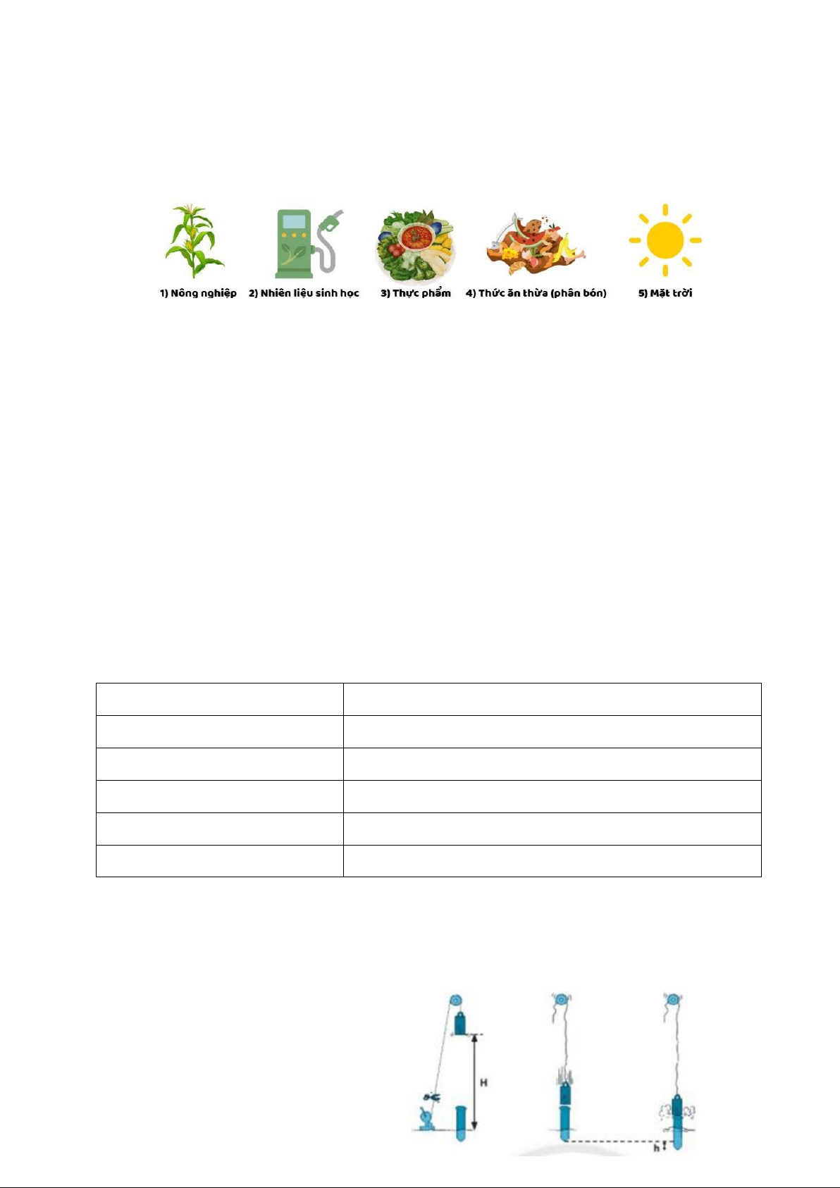 Câu 1. Có mấy dạng năng lượng? Trả lời: ..........
