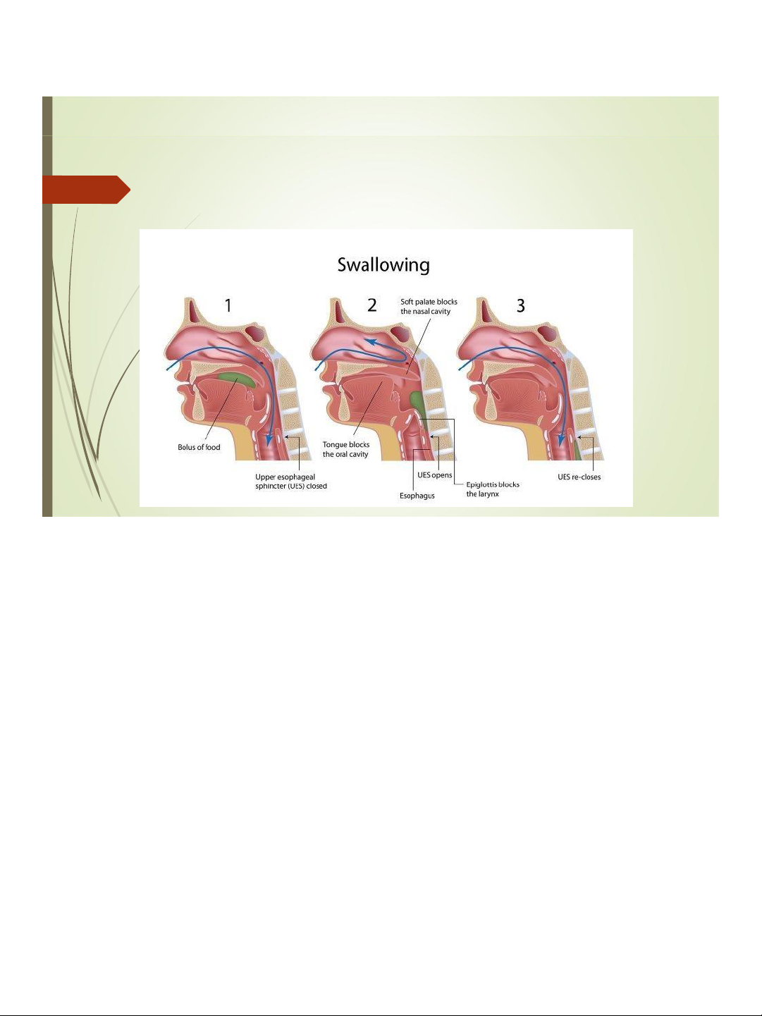 Đẩy viên thức ăn ra sau, chuẩn bị cho giai oạn nuốt 11 lOMoAR cPSD| 46342819 11/13/2021 Nuốt 12 lOMoAR cPSD| 46342819 11/13/2021 Bài tiết nước bọt 13 Bàitiếtnướcbọt 14 lOMoAR cPSD| 46342819 11/13/2021 Bài tiết nước bọt