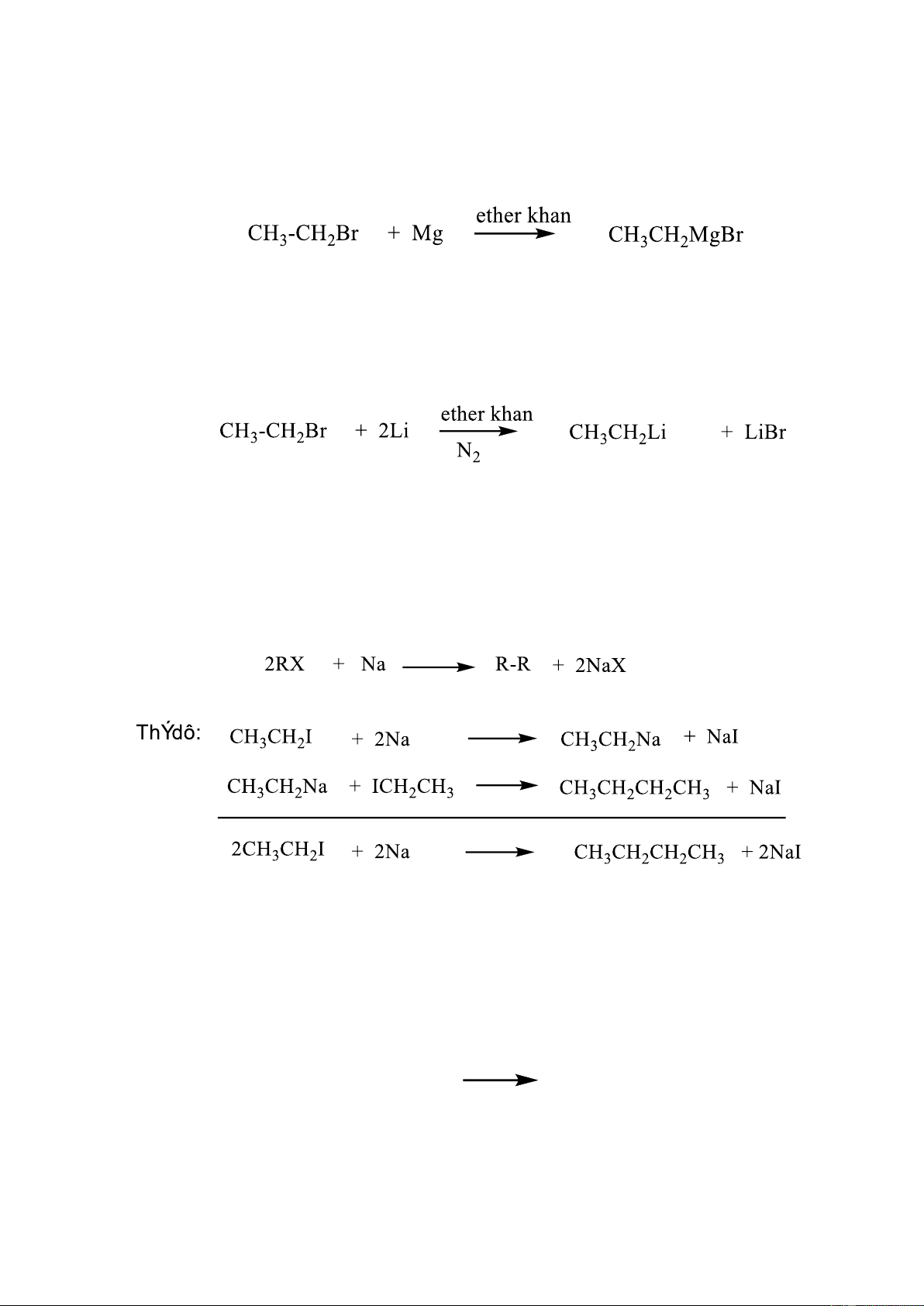 Tác dụng của RX với Na không dừng lại ở hợp chất cơ kim mà phản ứng tiếp tục