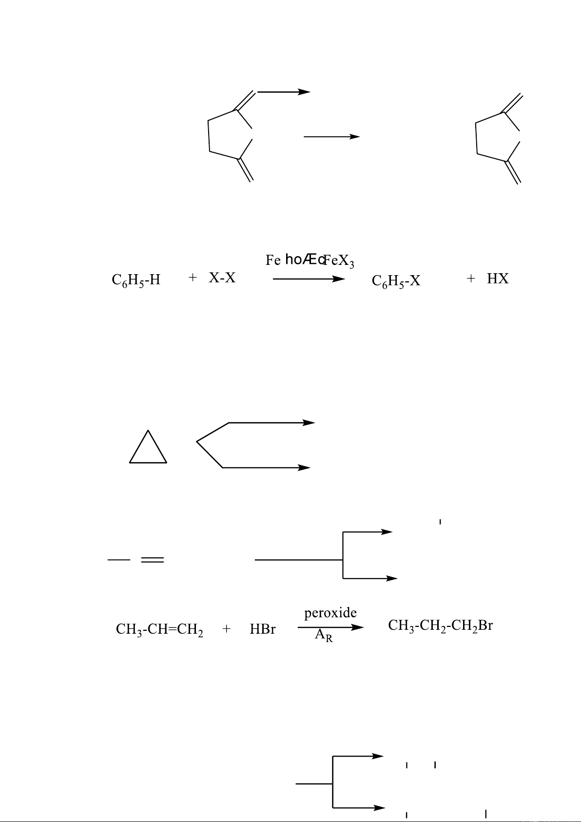 a. Cộng vào cyclopropane Br2 Br-CH -CH -CH -Br CCl 2 2 2 4 HX CH -CH -CH X 3 2 2 b. Cộng vào alkene Br (1) CH (95%) 3-CH-CH3 kh«ng cã oxi H3C C CH2 + HBr H (2) CH (5%) 3-CH2-CH2-Br