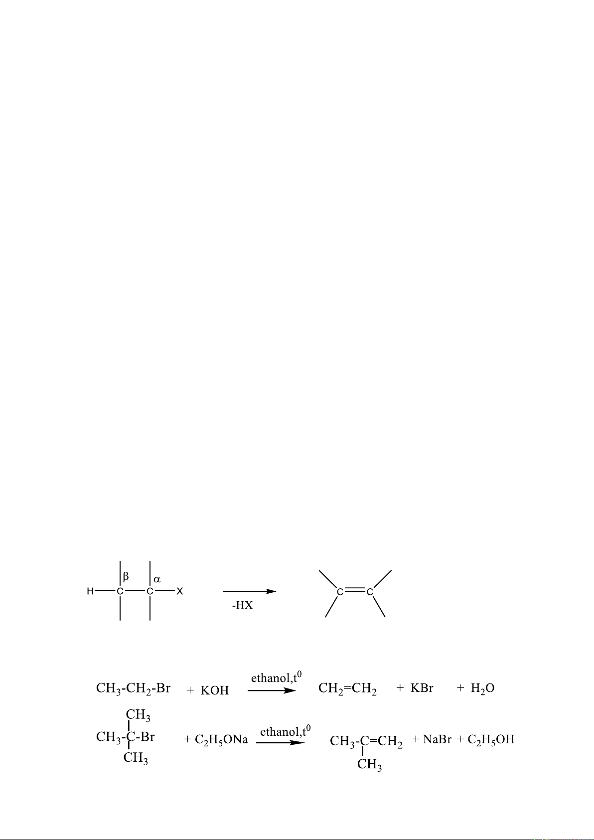 Khi có tác dụng của base trong dung môi rượu nguyên tử H ở vị trí β bị tách ra