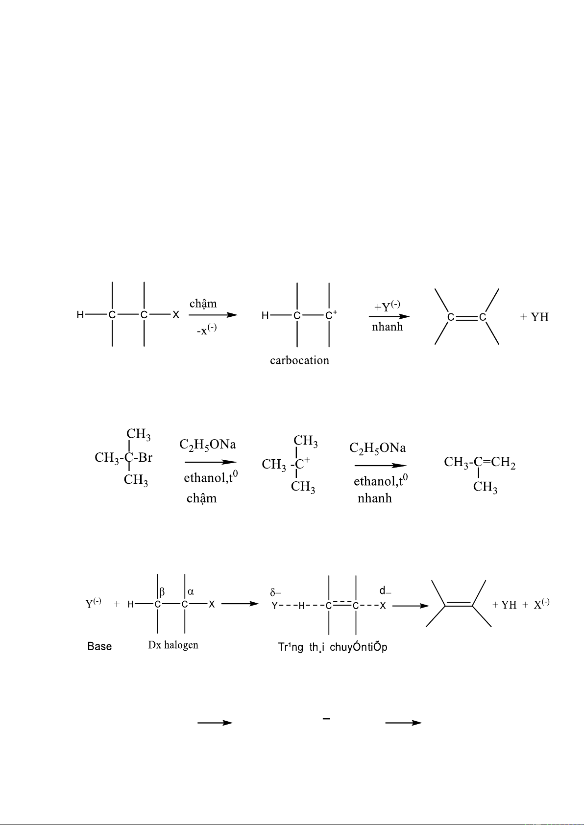 carbocation C+, sau đó C+ bị tách proton tạo alkene. Sơ đồ chung: