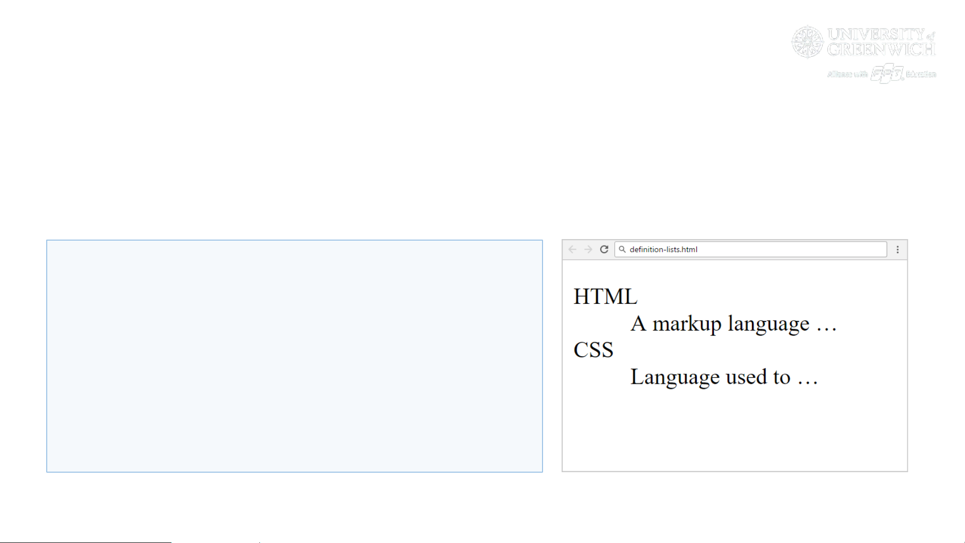 • Create definition lists using <dl>