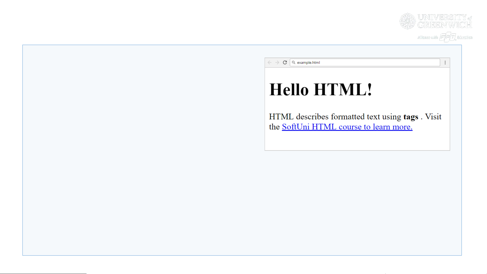 . Visit the courses">SoftUni HTML course to learn more.