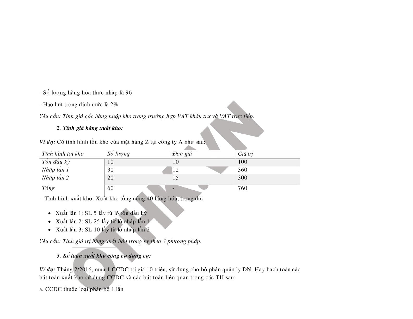 toán. tại thời iểm phát sinh nghiệp vụ. cuối kỳ ! Theo ó, giá trị HTK ược tính theo ơn giá trung bình. Chỉ ến cuối kỳ mới tính ược giá