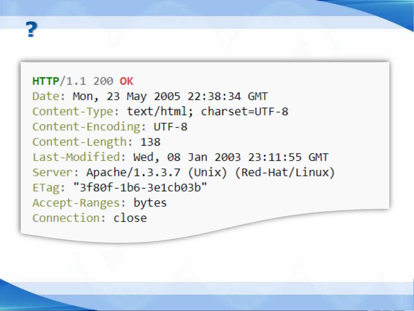 Accept-Ranges: — server can return subsections of a document
