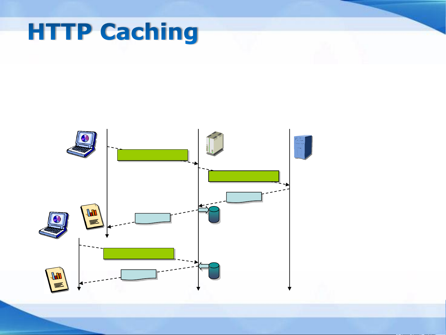 ▪ Cache control directives in HTTP header (no cache, age, etc.) Cache Origin GET http://origin/.. server server Client 1 GET http://origin/.. 200 OK 200 OK Client 2 GET http://origin/.. 200 OK