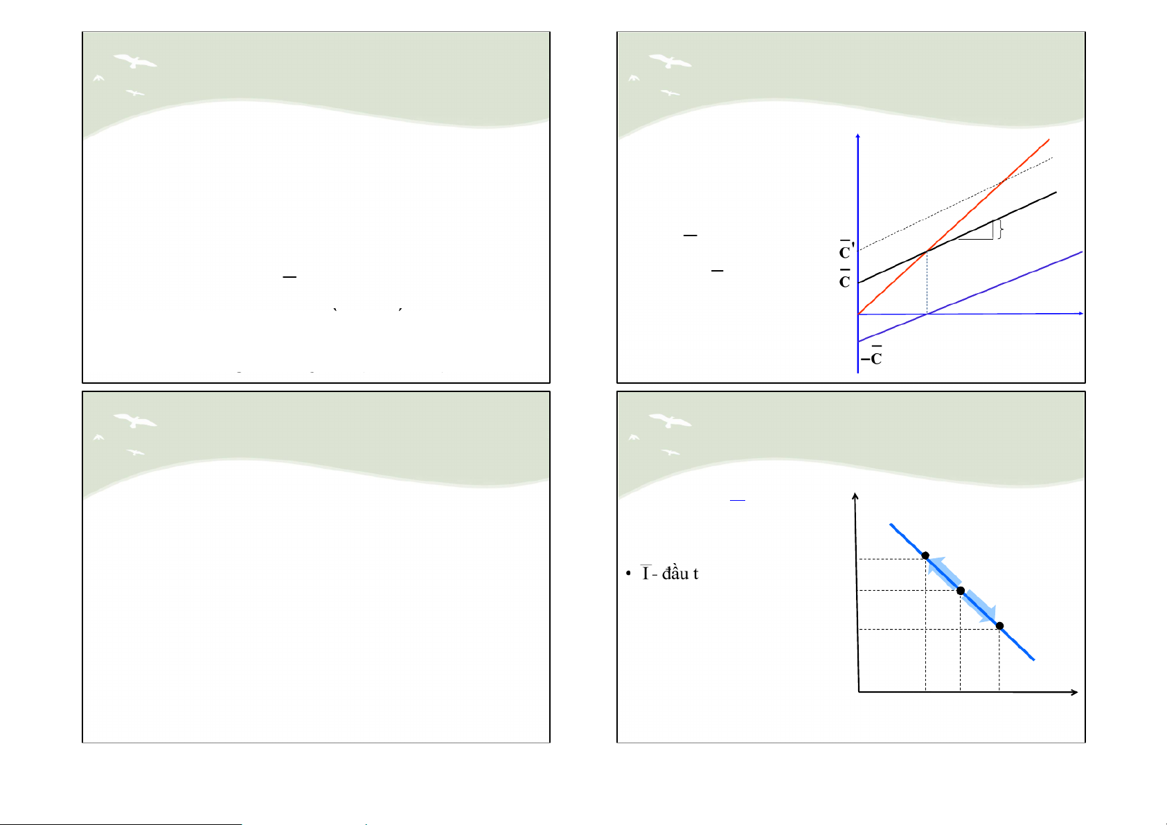 * Các chính sách kinh tế vĩ mô (thuế, lãi suất) S C (1 ).MPC YD S C C MPC.Y Y C C MP . S Y D D D S > 0 §Ví dụ: C = 300, MPC = 0,7 * Y < Yv C > Y S< 0 S < 0 Y Yv