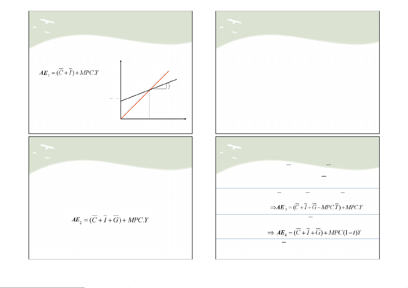 b. Tổng chi tiêu trong nền kinh tế đóng kinh tế đóng Khi có thuế: C C MPC.Y C MPC Y T D ( ) • CTTQ: AE = C + I + G S Y C C MPS Y D D .
