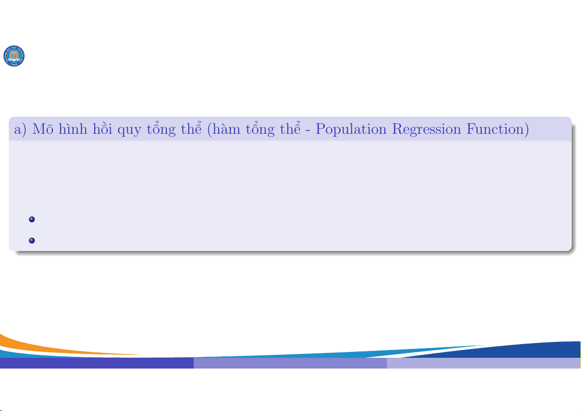 a) Mô hình h/i quy t2ng th3 (hàm t2ng th3 - Population Regression Function) Là hàm có dKng E(Y |Xji) = f(Xji) (1.1) j là chX sD bi8n quan sát; f là hàm sD ch#a bi8t.