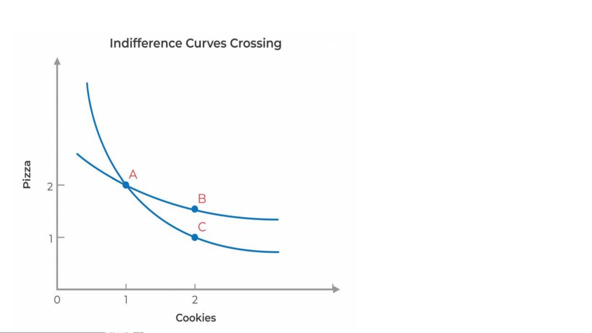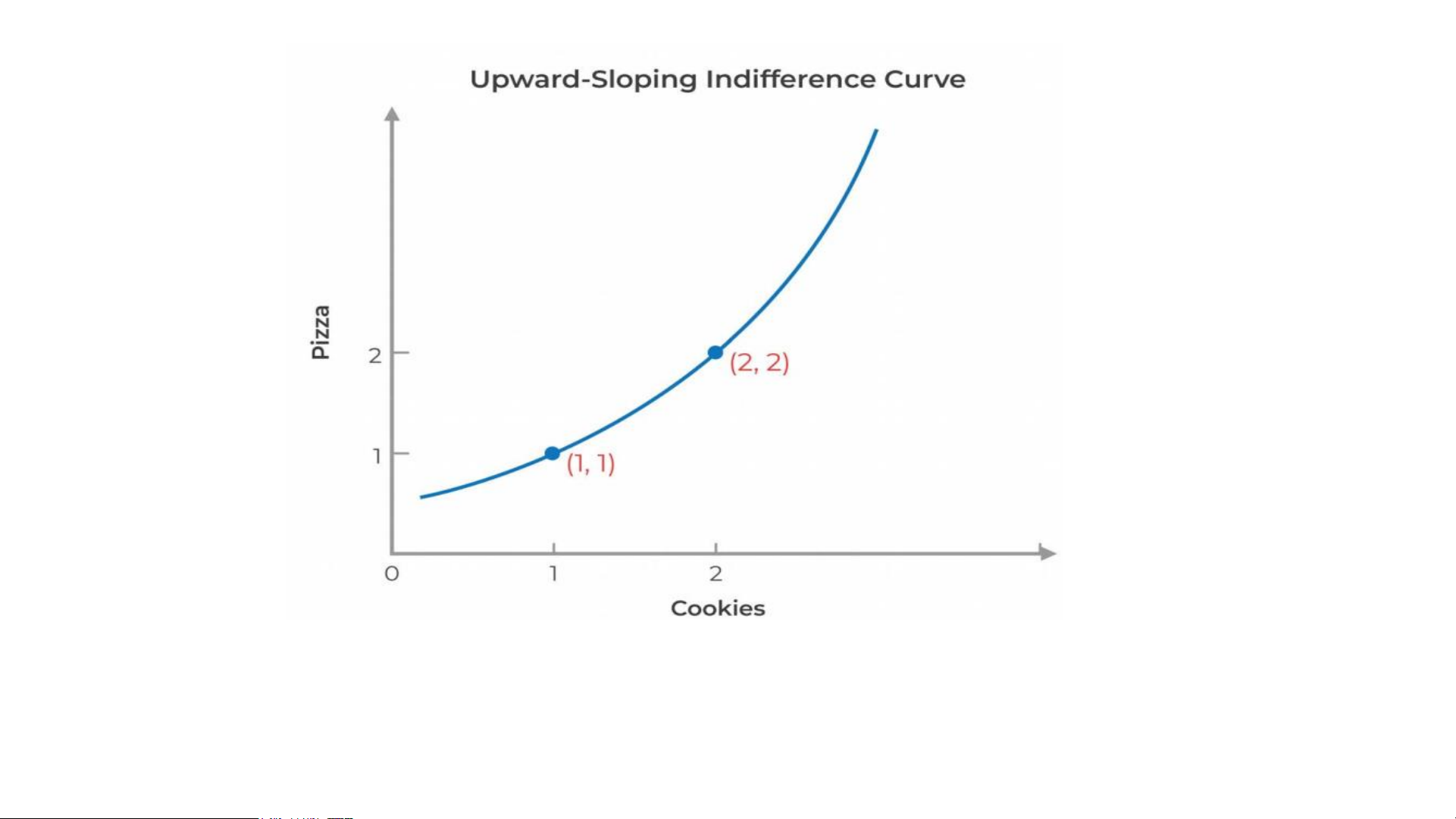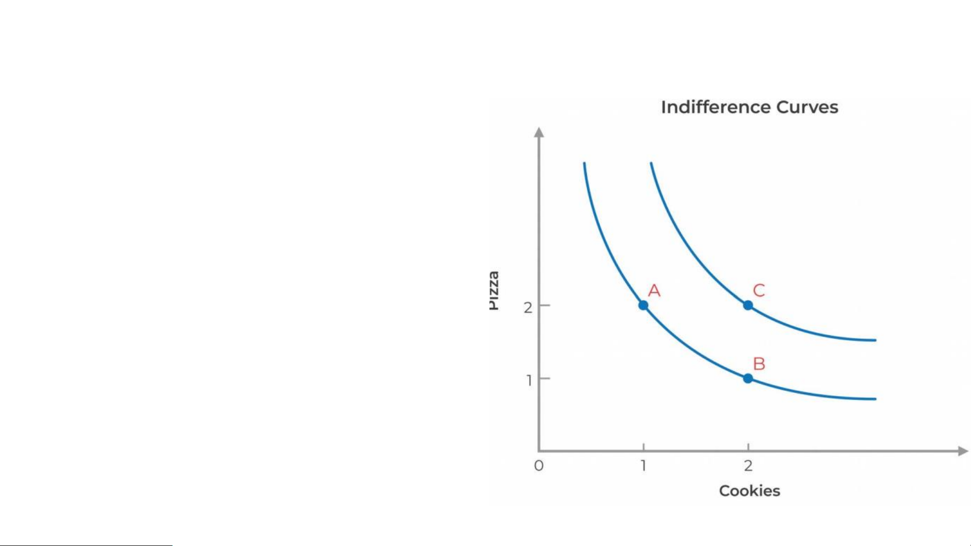 combinations of consumption among which you are indifferent • 3 choices: • A: 2 pizzas; 1 cookie • B: 1 pizza; 2 cookies • C: 2 pizza, 2 cookies