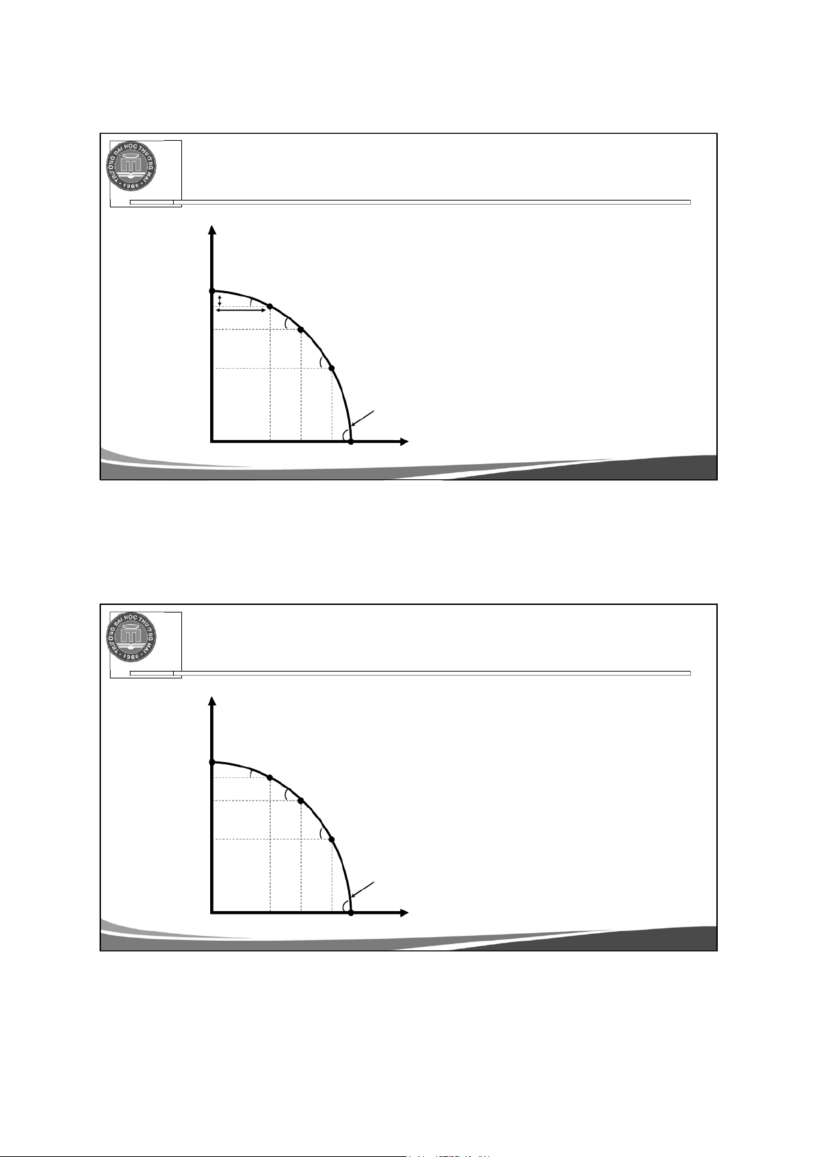 Đường PPF minh họa cho chi phí cơ hội Y 28 A ∆Y α1 B 25 ∆X α2 C 21 α 14 3 D PPF α4 E 0 10 2416 21 X 25