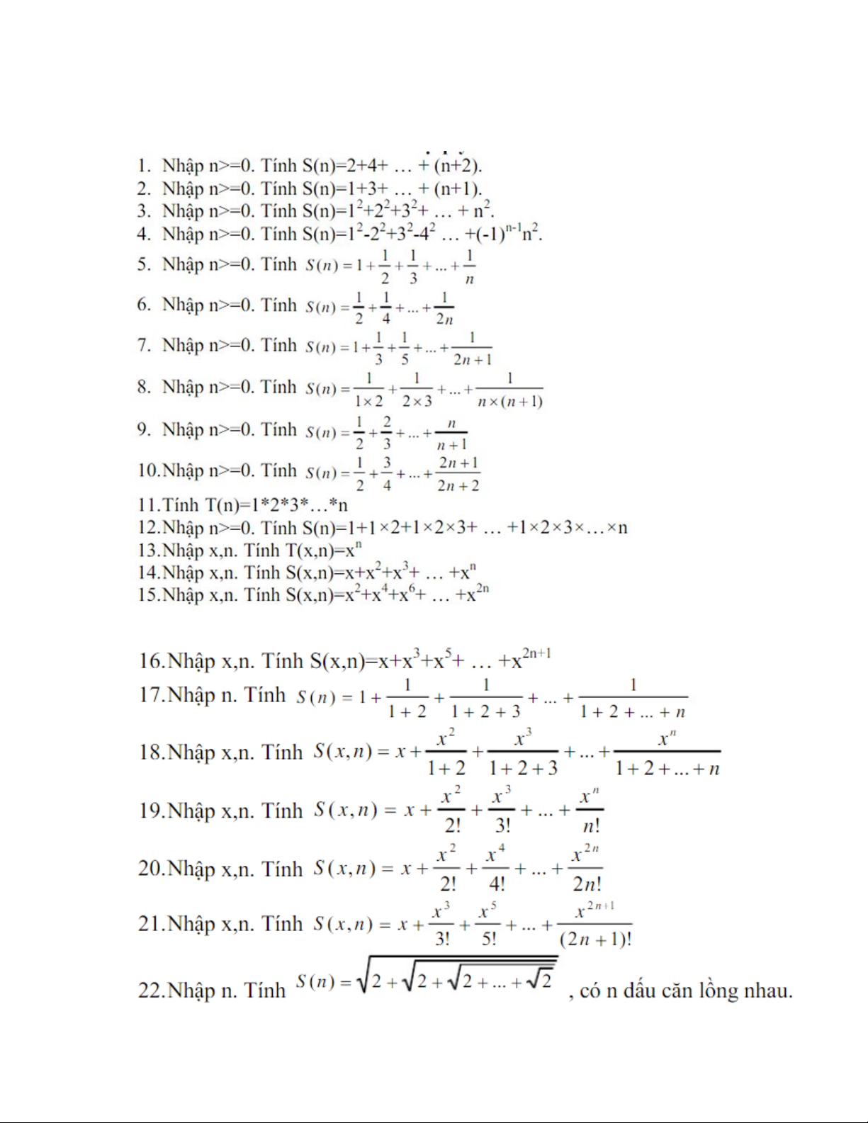 10. Viết chương trình tính f với n nguyên, x thực