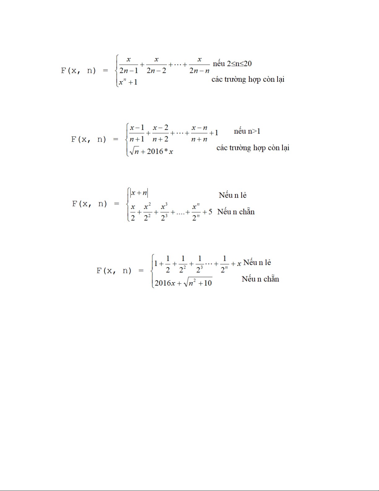 (𝑥 + 1)2 + (𝑥 + 2)2 + ⋯ + (𝑥 + 𝑛)2 𝑣𝑜𝑖 𝑥 < 0 𝑓(𝑥, 𝑛) = {