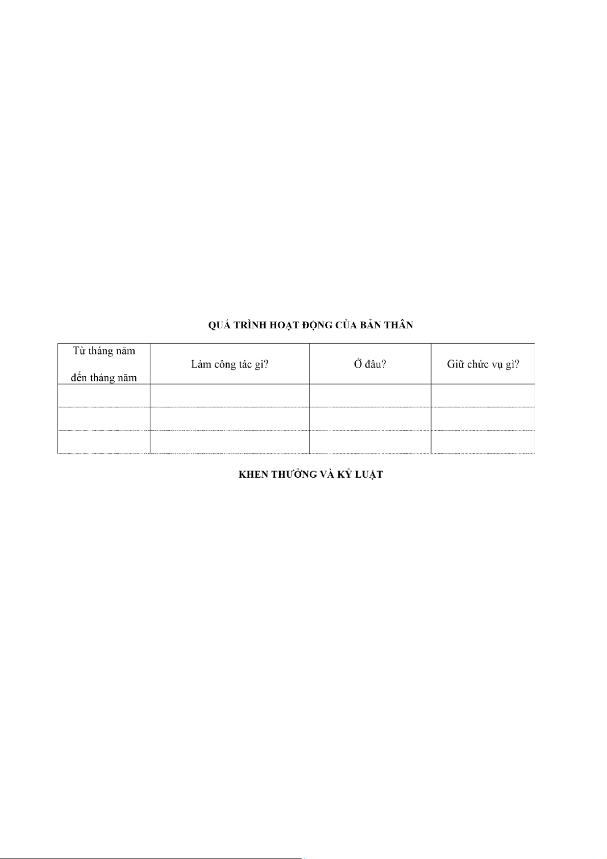- Kê khai khen thưởng và kỷ luật (nếu có). - Cam đoan.