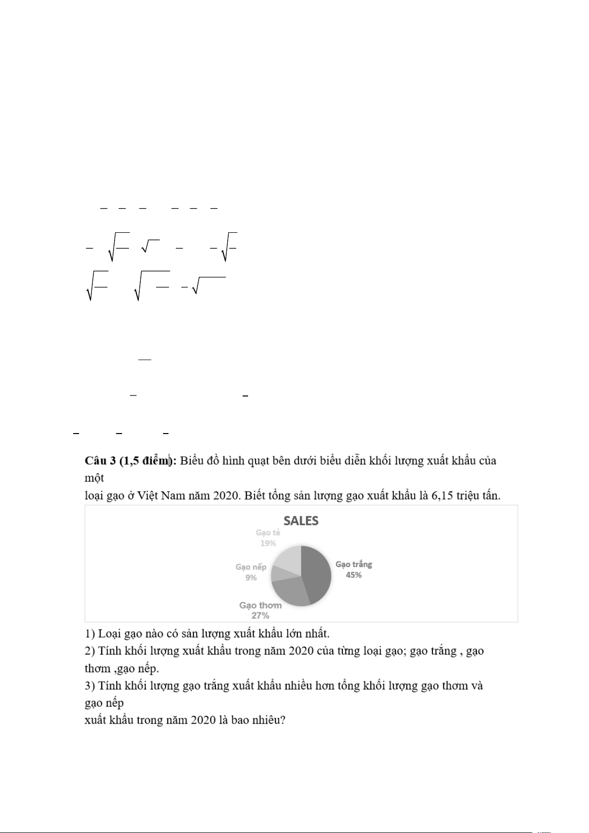 Bài 3. (1,5 điểm) Cho biểu đồ sau đây.