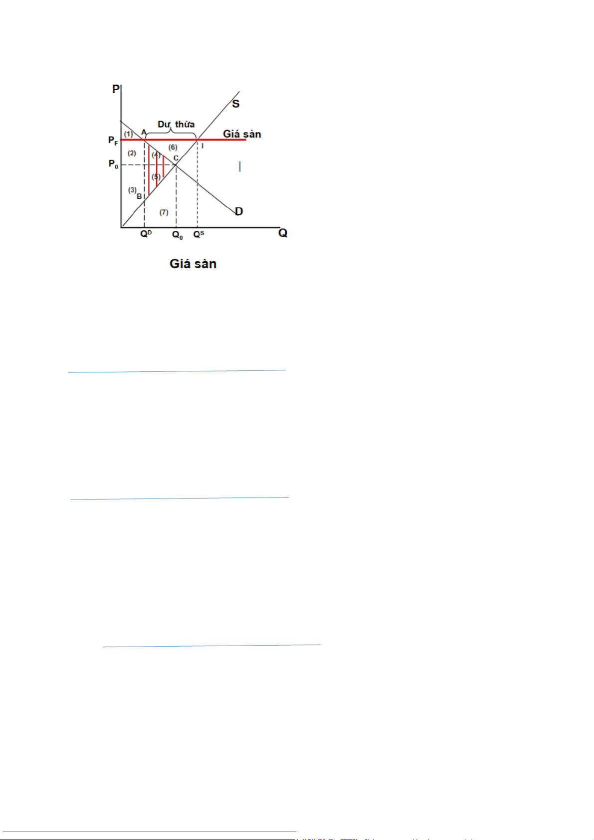 DWL(dead weight loss)= giảm TSB= tổn thất xã hội = mất không = (4)+(5) * Giá sàn: P F