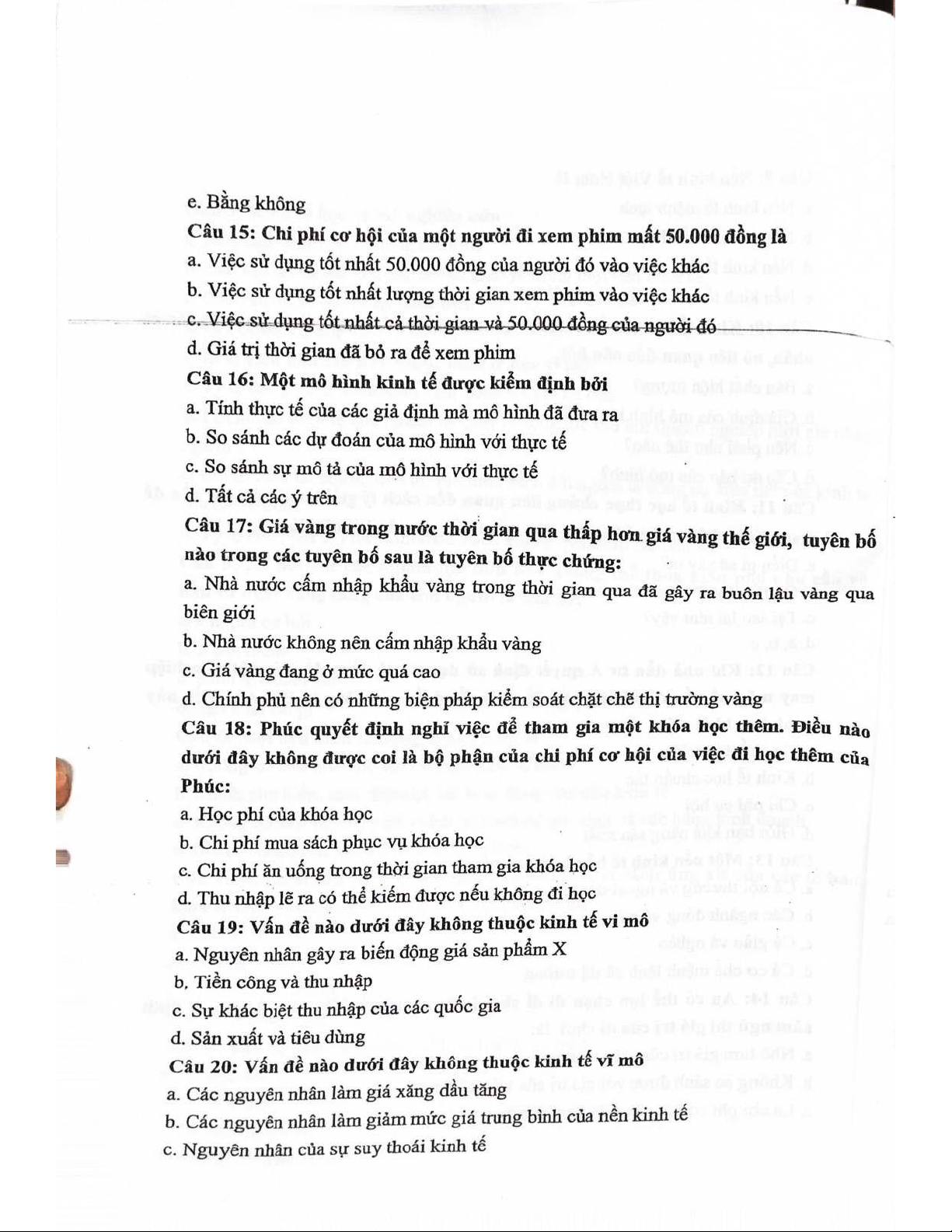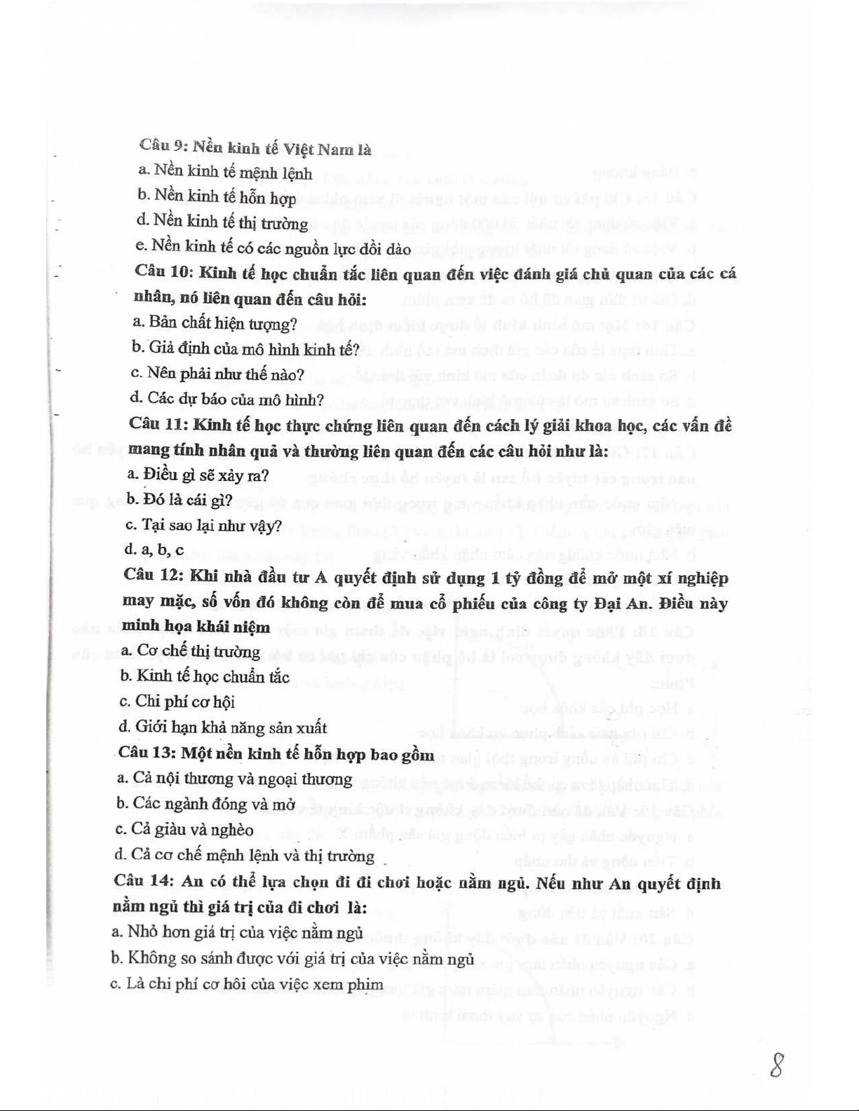 Đề thi Môn Kinh tế vi mô | Đại học Khoa học và Công nghệ Hà Nội